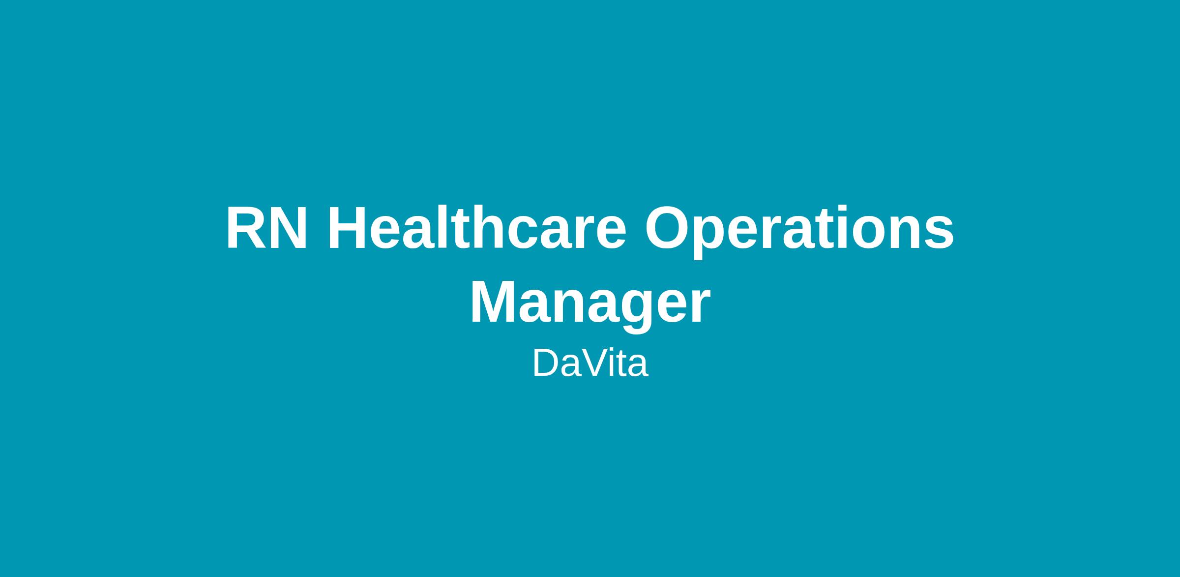 DaVita has an open position for a Healthcare Operations Manager (Facility Administrator) who must be an ambitious, operationally-focused and results-driven leader. You will directly impact patient care as the trusted front-line leader in an outpatient clinic setting. Clinical Experience Registered Nurse Required.