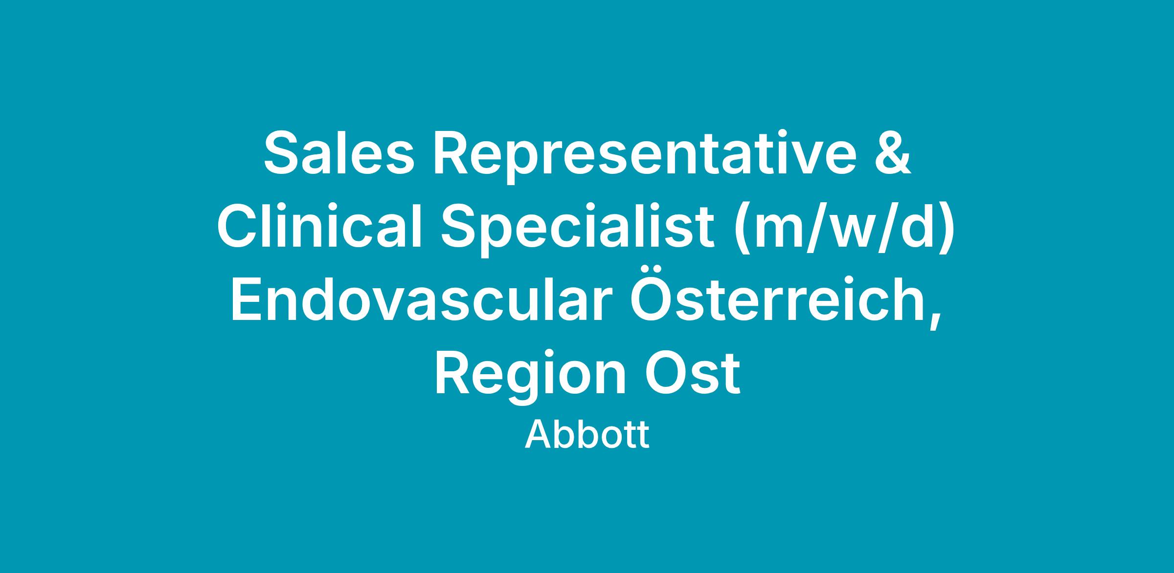 Die Position wird in der Region Ost Bereich Vascular - Abbott Medical Austria GmbH besetzt. Abbott Vascular bietet innovative, minimal-invasive Produkte zur Behandlung von Gefäßerkrankungen.