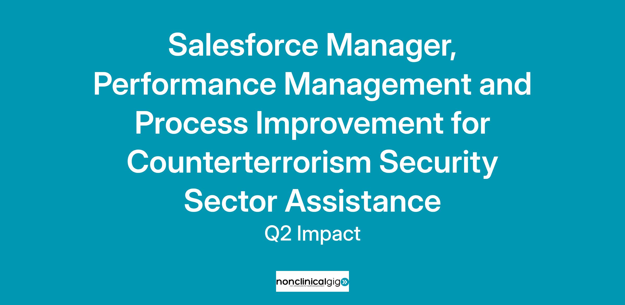 Q2IMPACT is seeking a forward-thinking Salesforce Manager to join our expanding team in support of the Department of State�s Bureau of Counterterrorism (CT). The Salesforce Manager will drive technical leadership, solution design, and ongoing enhancement of the Program Information Sharing Module (PRISM)�the State Department�s core Salesforce-based platform for managing security sector assistance. This role will play a pivotal part in developing, configuring, and optimizing Salesforce capabilities to facilitate data-driven decision-making, streamline program management, and deliver impactful data visualizations.