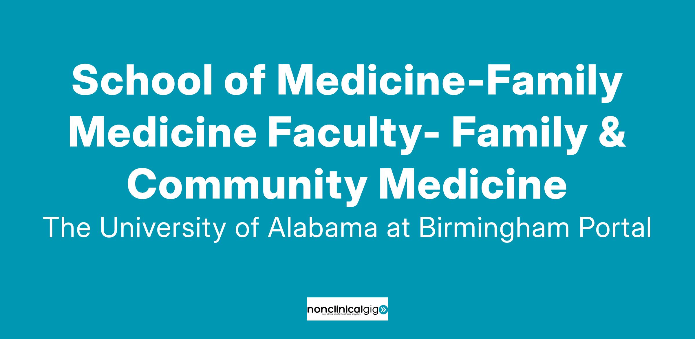 Our department is committed to continuous improvement in patient care, education, research, and service. We are actively searching for individuals who can contribute to our mission of high-quality patient care, excellence in education, and the progression of science through scholarship. Aside from direct patient care, faculty will have the opportunity to pursue academic interests such as the following: Teach a variety of courses within the medical school curriculum Educate learners within our Family Medicine residencies and fellowships Conduct research and scholarly activity within an institution that exceeded $840 million in grant funding in FY21, and includes potential collaborators such as Precision Medicine, the Center for Exercise Medicine, Preventive Medicine, the Lakeshore Foundation, and UAB Nutrition Obesity Research Center ( NORC ) Continue to develop our expertise in Precision Medicine, Value-Based Care, Leadership in Medicine, Point of Care Ultrasound ( POCUS ), Digital Health, and Lifestyle & Exercise Medicine