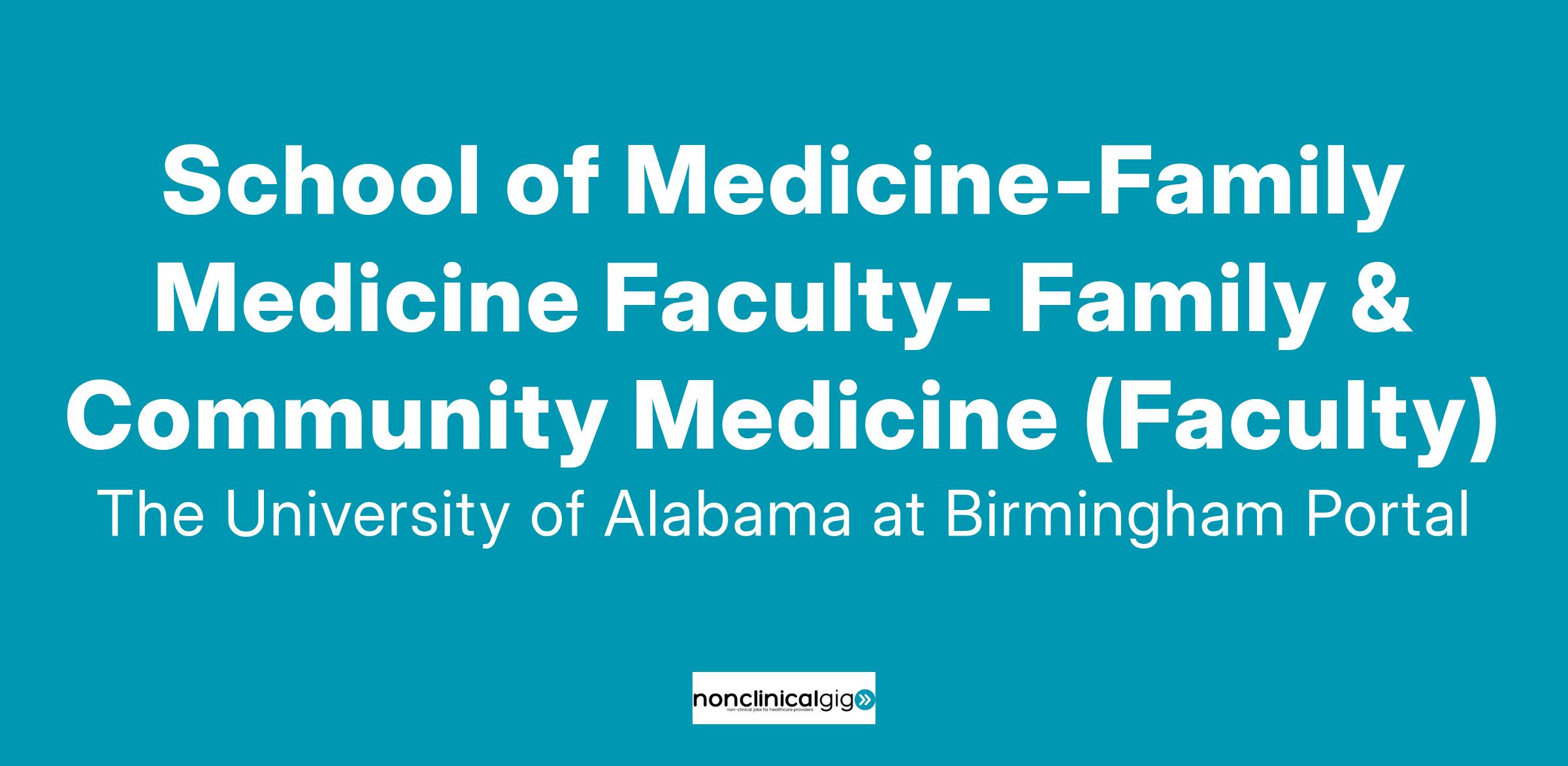 Our department is committed to continuous improvement in patient care, education, research, and service. We are actively searching for individuals who can contribute to our mission of high-quality patient care, excellence in education, and the progression of science through scholarship. Aside from direct patient care, faculty will have the opportunity to pursue academic interests such as the following: Teach a variety of courses within the medical school curriculum Educate learners within our Family Medicine residencies and fellowships Conduct research and scholarly activity within an institution that had $774.5 million in grant funding in FY23, and includes potential collaborators such as Precision Medicine, the Center for Exercise Medicine, Preventive Medicine, the Lakeshore Foundation, and UAB Nutrition Obesity Research Center ( NORC ) Continue to develop our expertise in Precision Medicine, Value-Based Care, Leadership in Medicine, Point of Care Ultrasound ( POCUS ), Digital Health, and Lifestyle & Exercise Medicine