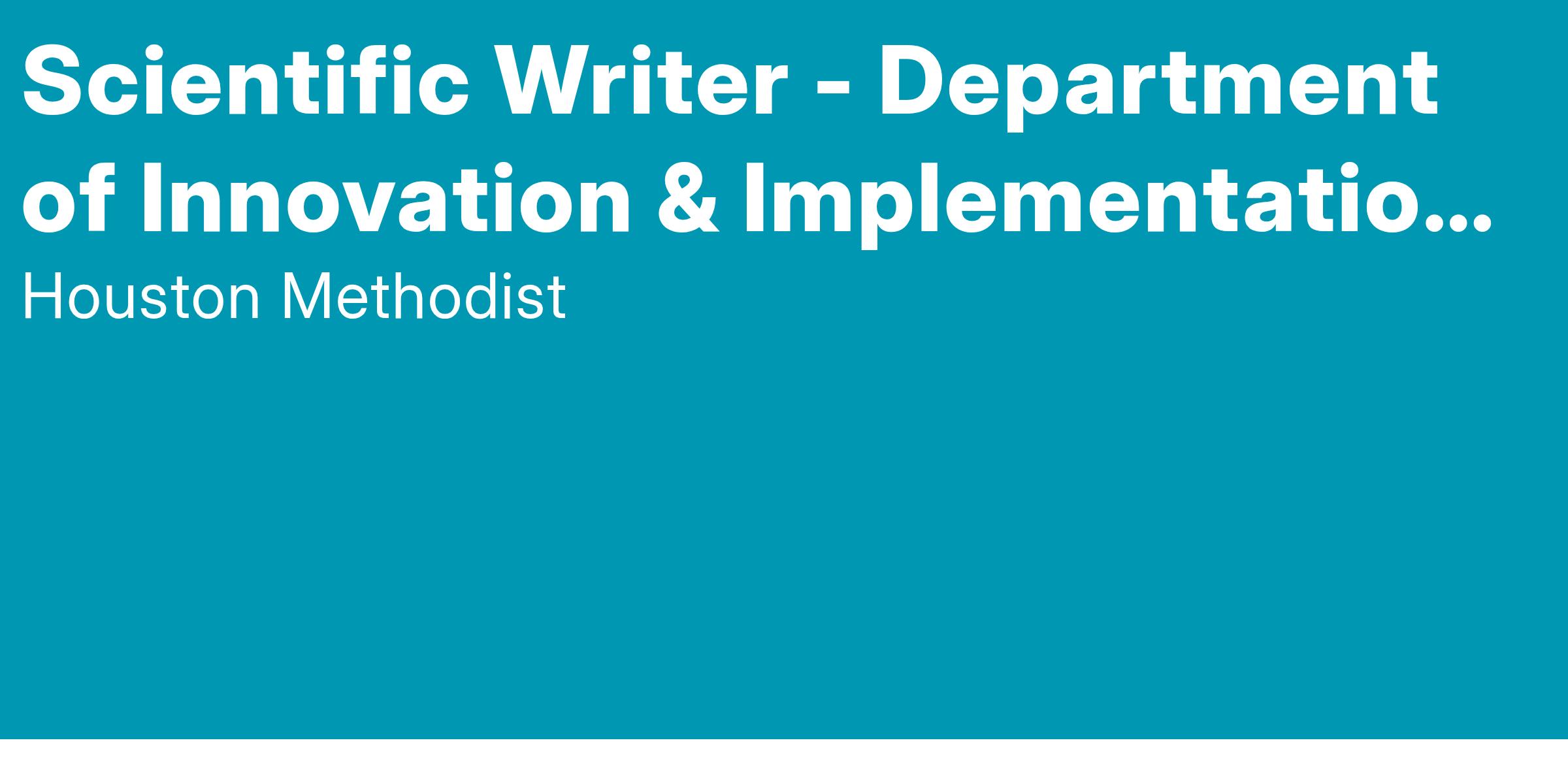 The Scientific Writer at Houston Methodist, Department of Digital Health Innovation and Implementation Research position must have experience writing and editing a variety of digital health/innovation topics in multiple health care settings and in different specialties focusing on impact ranging from clinical to operational and financial.