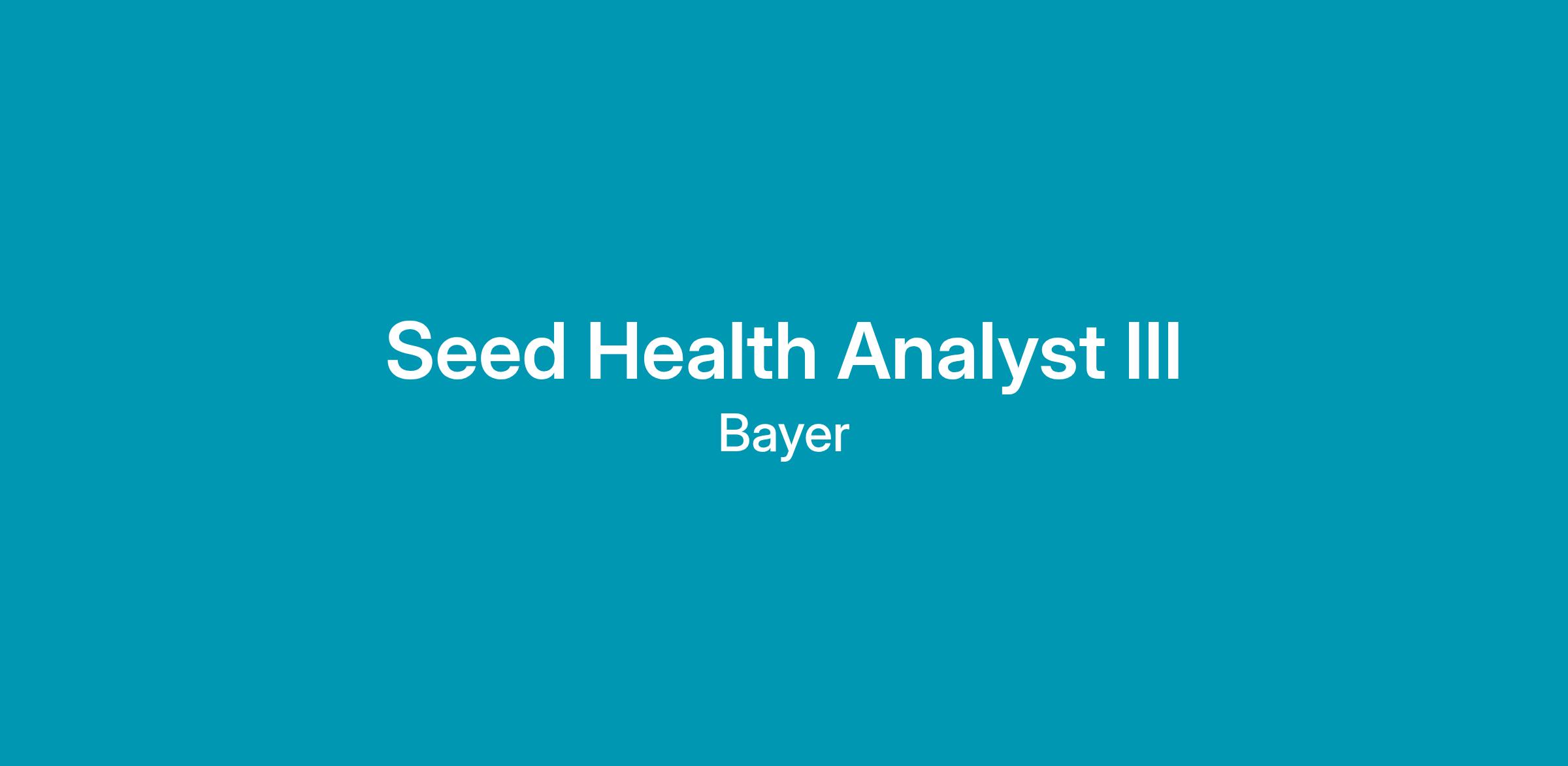 Seed Health Analyst III