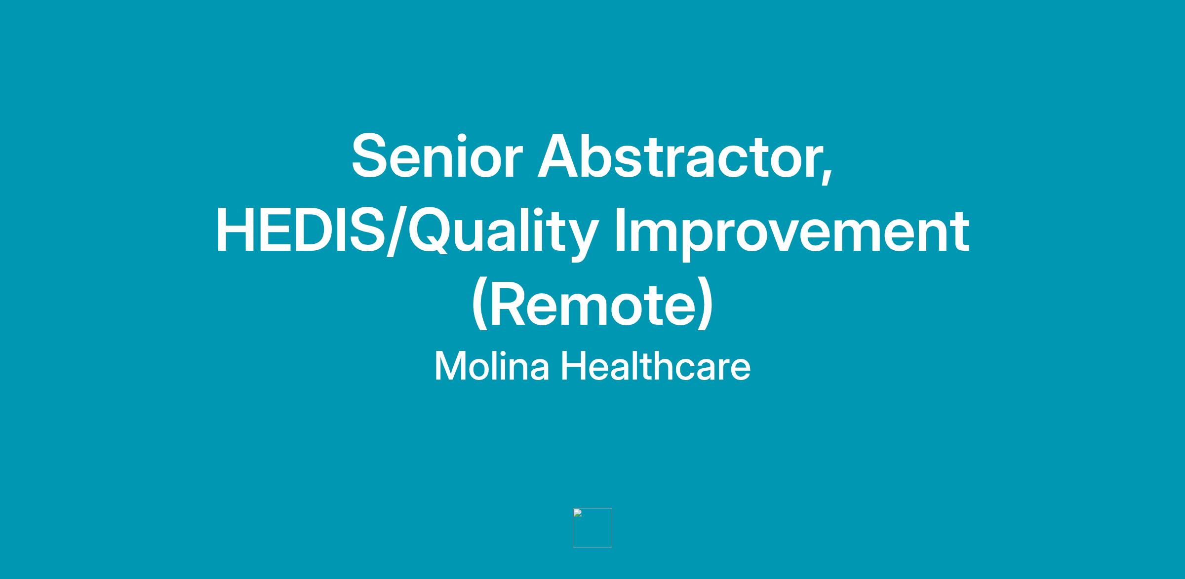 Molina's Quality Improvement Sr. Abstractor conducts data collection and abstraction of medical records for HEDIS projects, HEDIS like projects and supplemental data collection. The abstraction team will meet chart abstraction productivity standards as well as minimum over read standards. Sr. Abstractors will also provide mentoring to entry level abstractors.