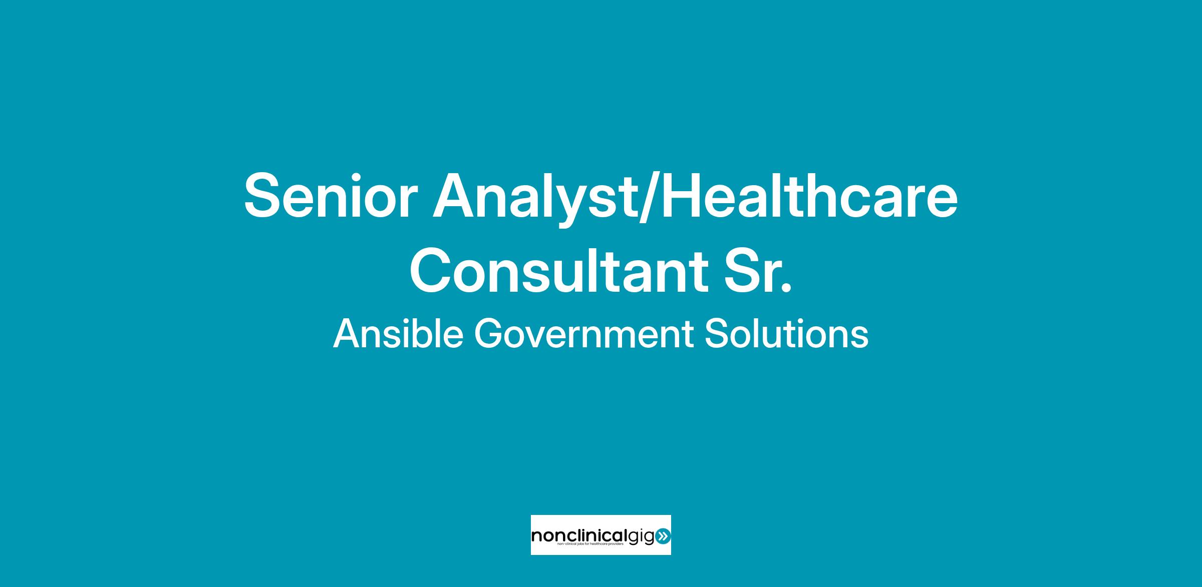 Ansible Government Solutions, LLC (Ansible) is currently recruiting a Senior Analyst/Healthcare Consultant Sr. to support large programs focused on Innovation and Transformation within the Federal Health Sector. The Consultant will work with the Ansible team and federal healthcare clients to develop integrated program plans and execute on delivery of programs that span capability areas. The Consultant will provide business process reengineering expertise, healthcare operations analysis, and Lean Six Sigma methodologies to support transformation initiatives.