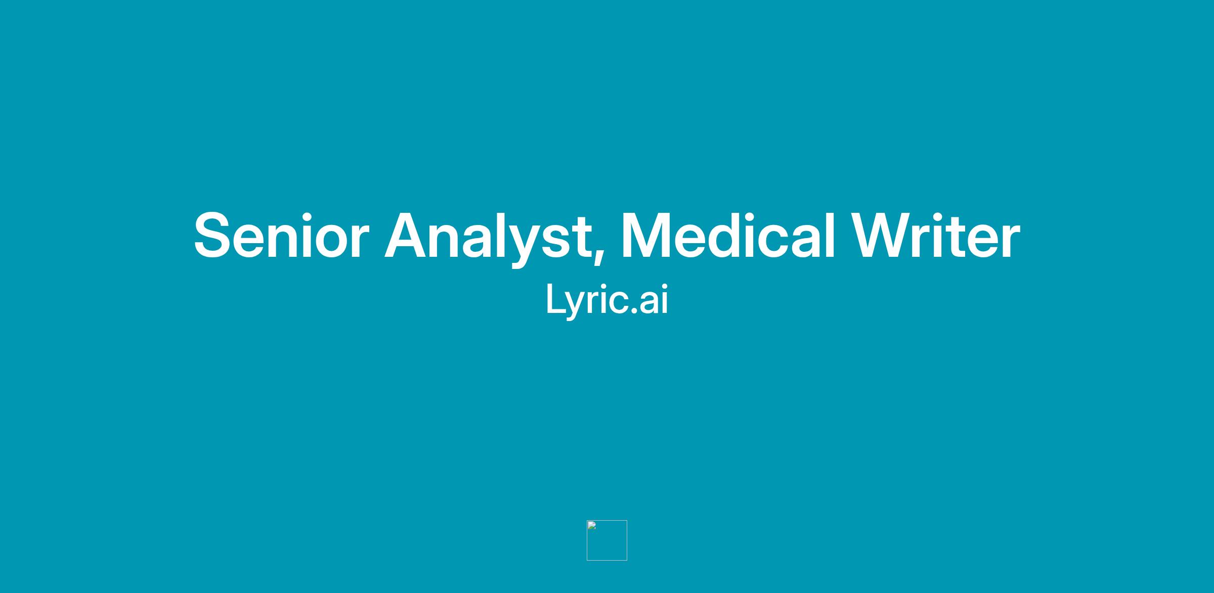 business development process at Lyric. The Senior Analyst, Medical Writer, is responsible for