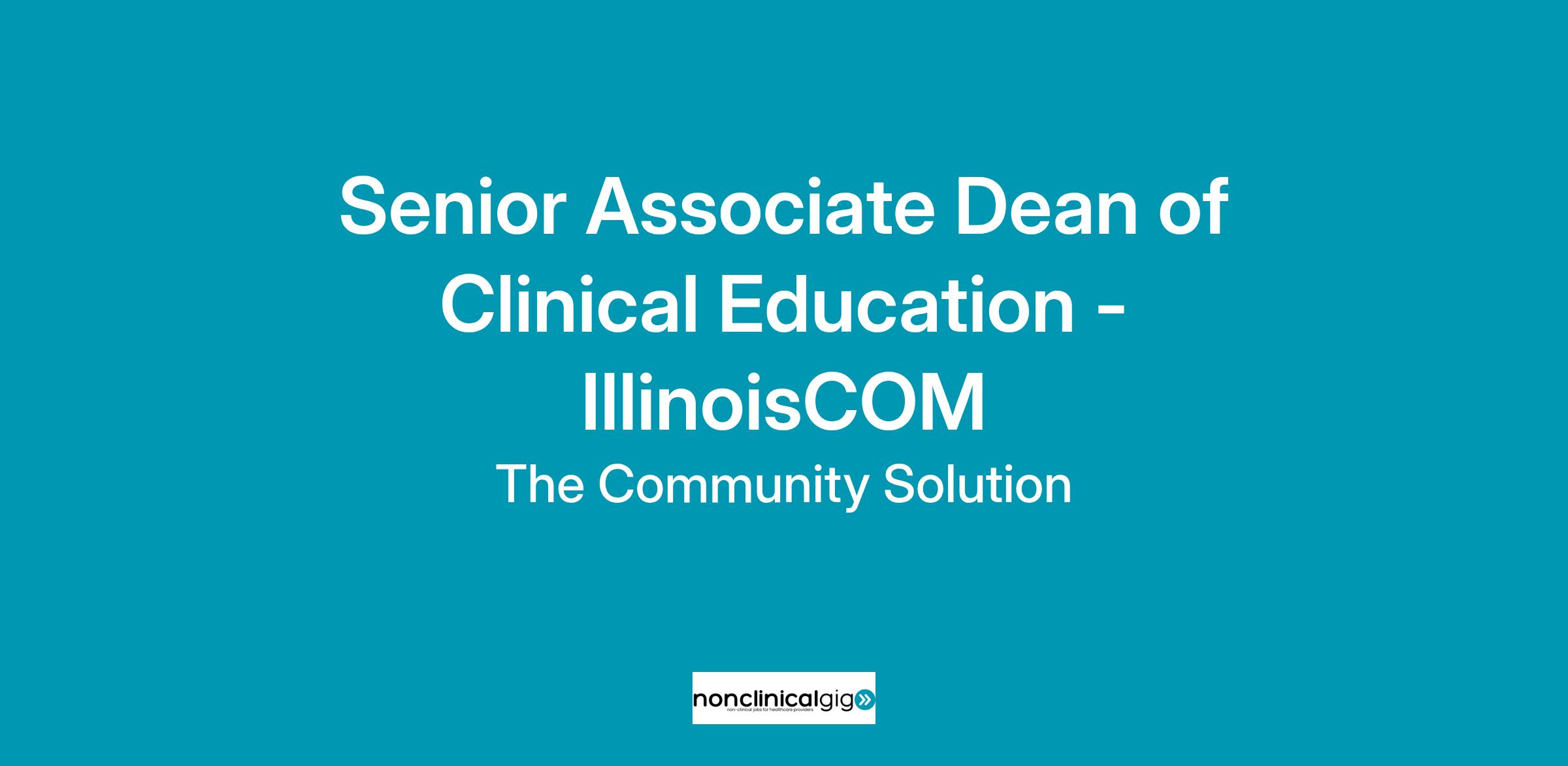 The Senior Associate Dean of Clinical Education will report to the Founding Dean and serve on the leadership team of the IllinoisCOM. This position requires working effectively within a matrixed organization, collaborating with leadership at the IllinoisCOM, The Chicago School, and The Community Solution Education System.
