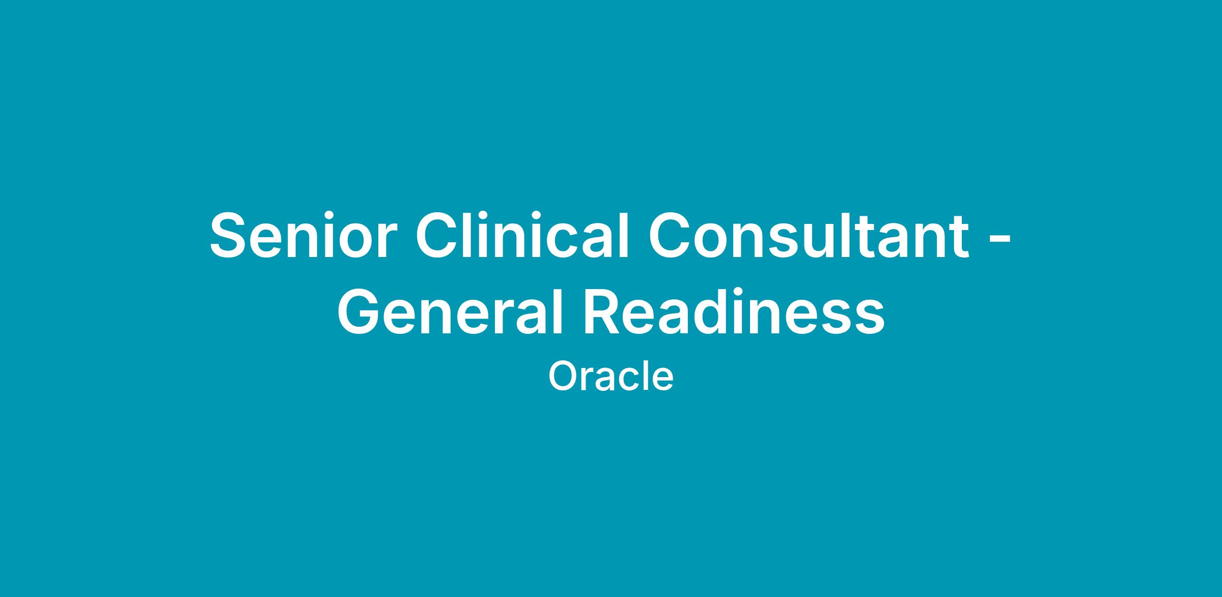 Senior Clinical Consultant - General Readiness
