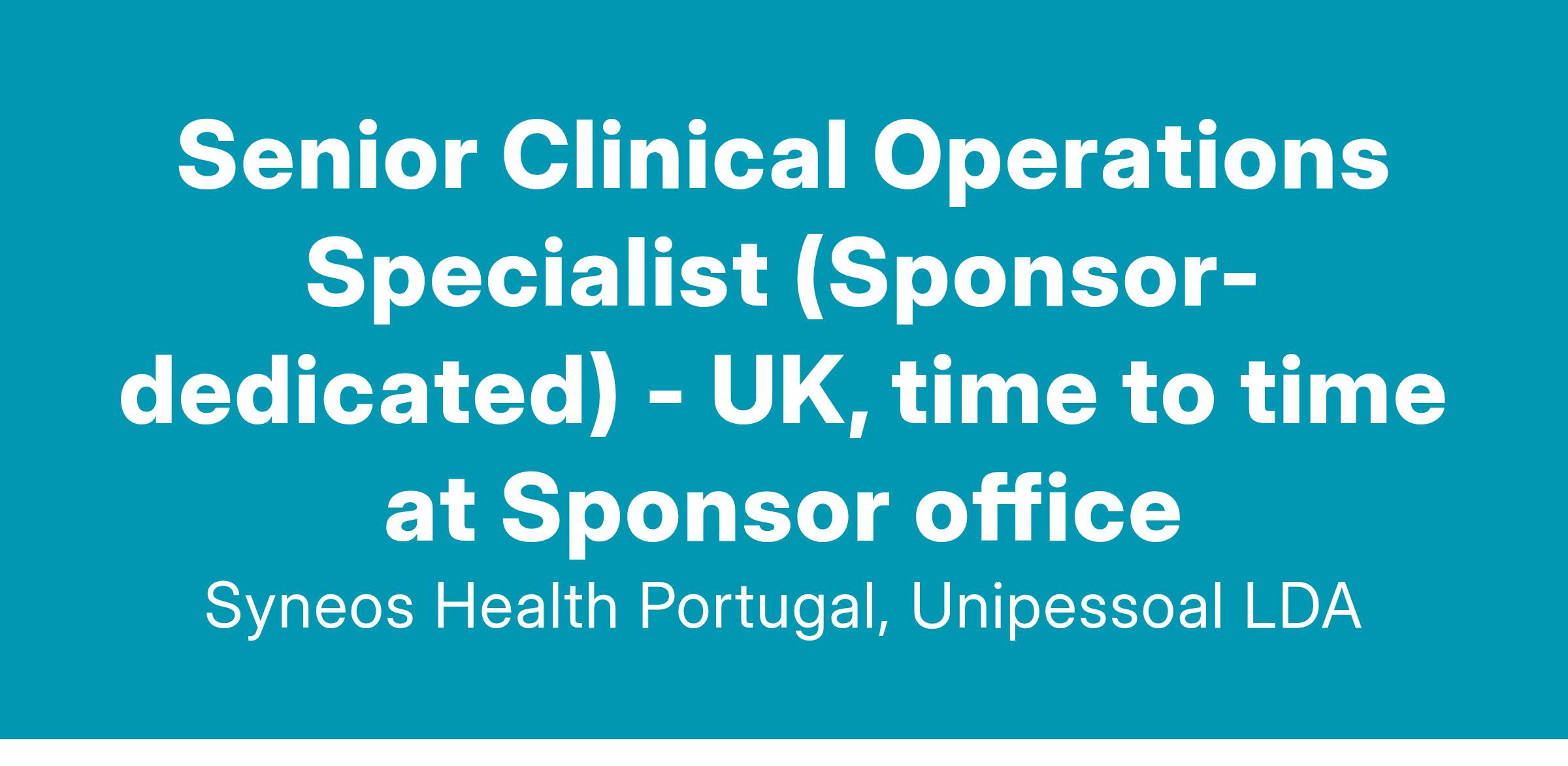 Senior Clinical Operations Specialist (Sponsor-dedicated) - UK, time to time at Sponsor office