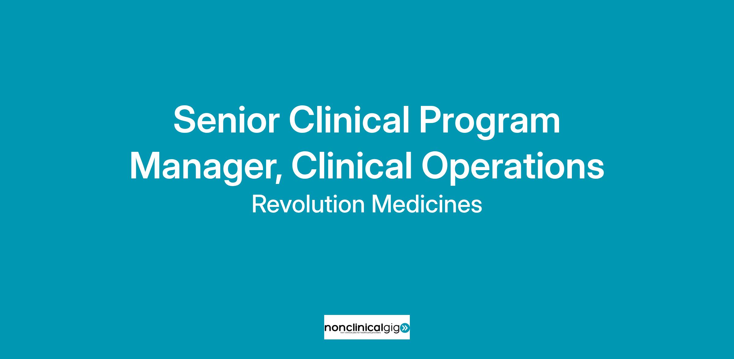 This is a unique opportunity for a Clinical Operations Professional. As a Sr. Clinical Program Manager, you will be responsible for acting as a central contact for the Clinical Study Team(s) and assist with the execution and management of Revolution Medicines (RevMed) clinical trials.