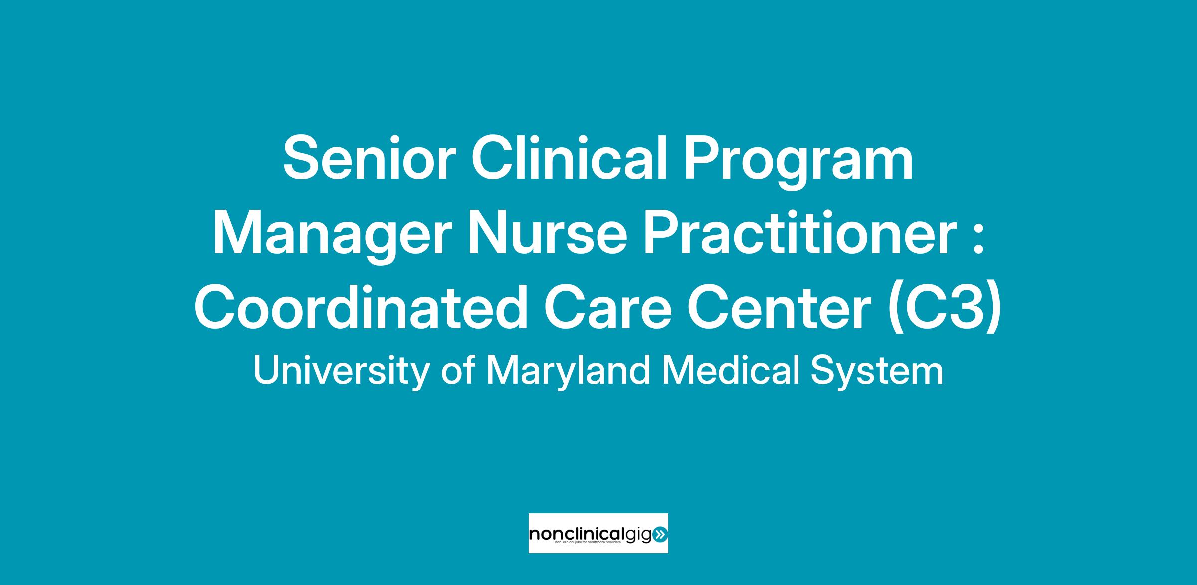 This position is for a Senior Clinical Program Manager over our Coordinated Care Center (C3) Department at our Baltimore Campus. You must be an experienced Advanced Practice Provider for this position.