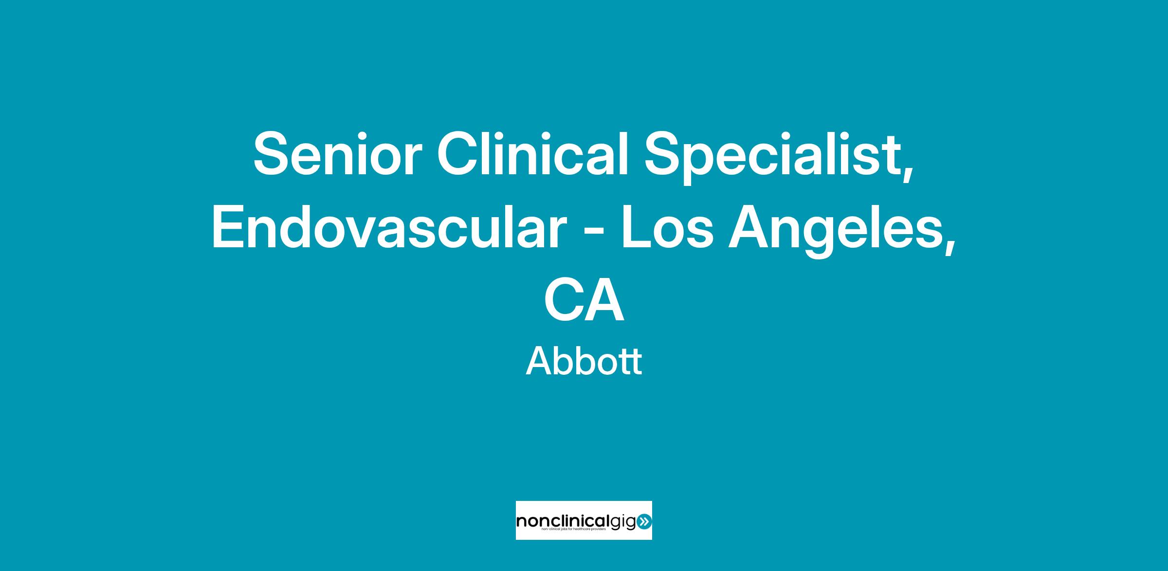 We currently have an opportunity for a Senior Clinical Specialist, Endovascular, in Los Angeles, CA. The Clinical Specialist will primarily be responsible for case planning, case support coverage, and product pull- through throughout the designated territory, and throughout the Region as needed. The Clinical Specialist will promote Vascular products through education, service and training of customers in the hospital setting. The Clinical Specialist will provide clinical education and sales support in order to assist in achieving projected sales goals, increasing sales revenues within assigned product lines, and increasing market share. This position will have a heavy focus on Vessel Closure.