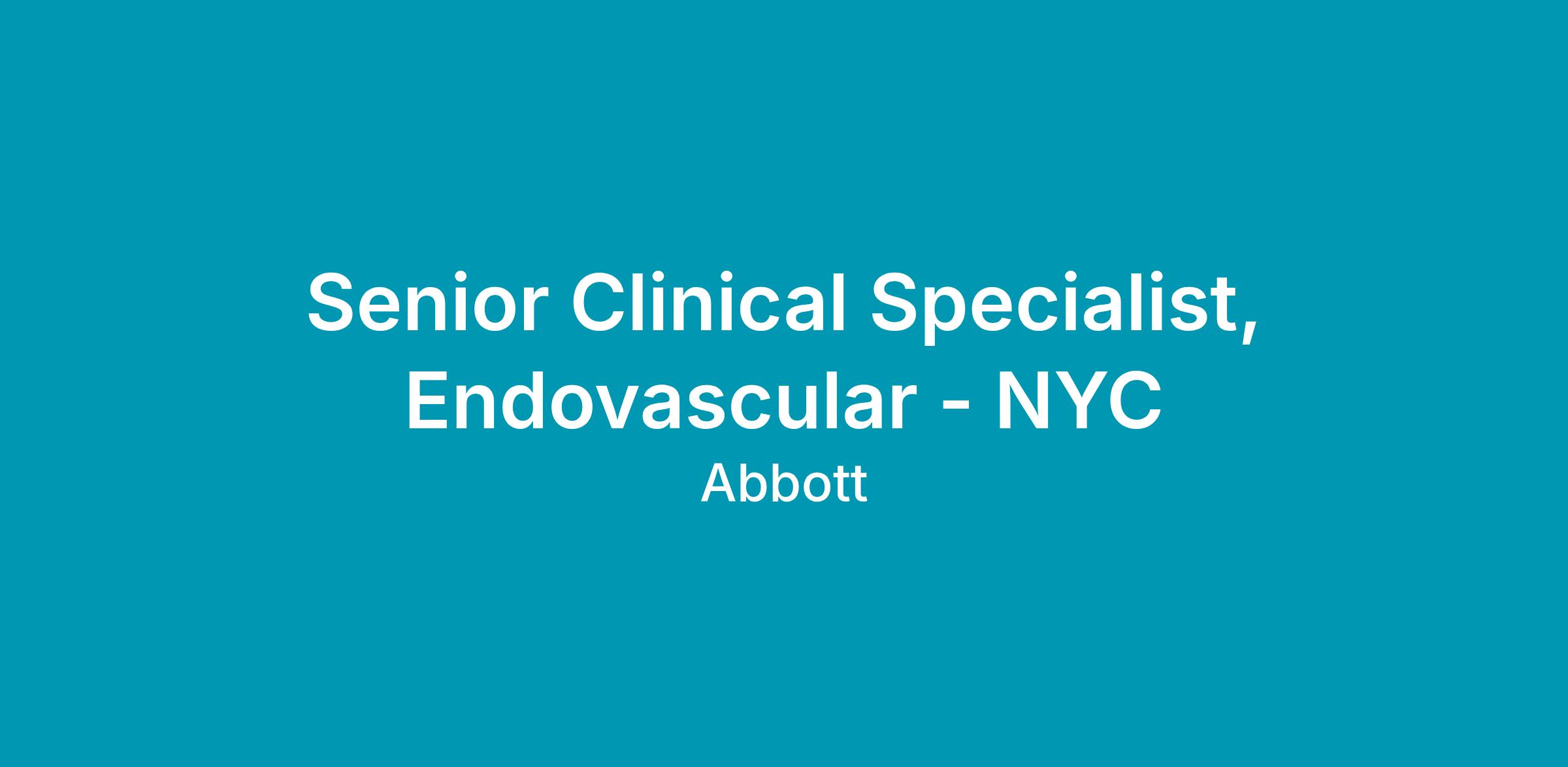 We currently have an opportunity for a Clinical Specialist, Endovascular, in NYC. The Clinical Specialist will primarily be responsible for case planning, case support coverage, and product pull- through throughout the designated territory, and throughout the Region as needed. The Clinical Specialist will promote Vascular products through education, service and training of customers in the hospital setting. The Clinical Specialist will provide clinical education and sales support in order to assist in achieving projected sales goals, increasing sales revenues within assigned product lines, and increasing market share. This position will have a heavy focus on Vessel Closure.