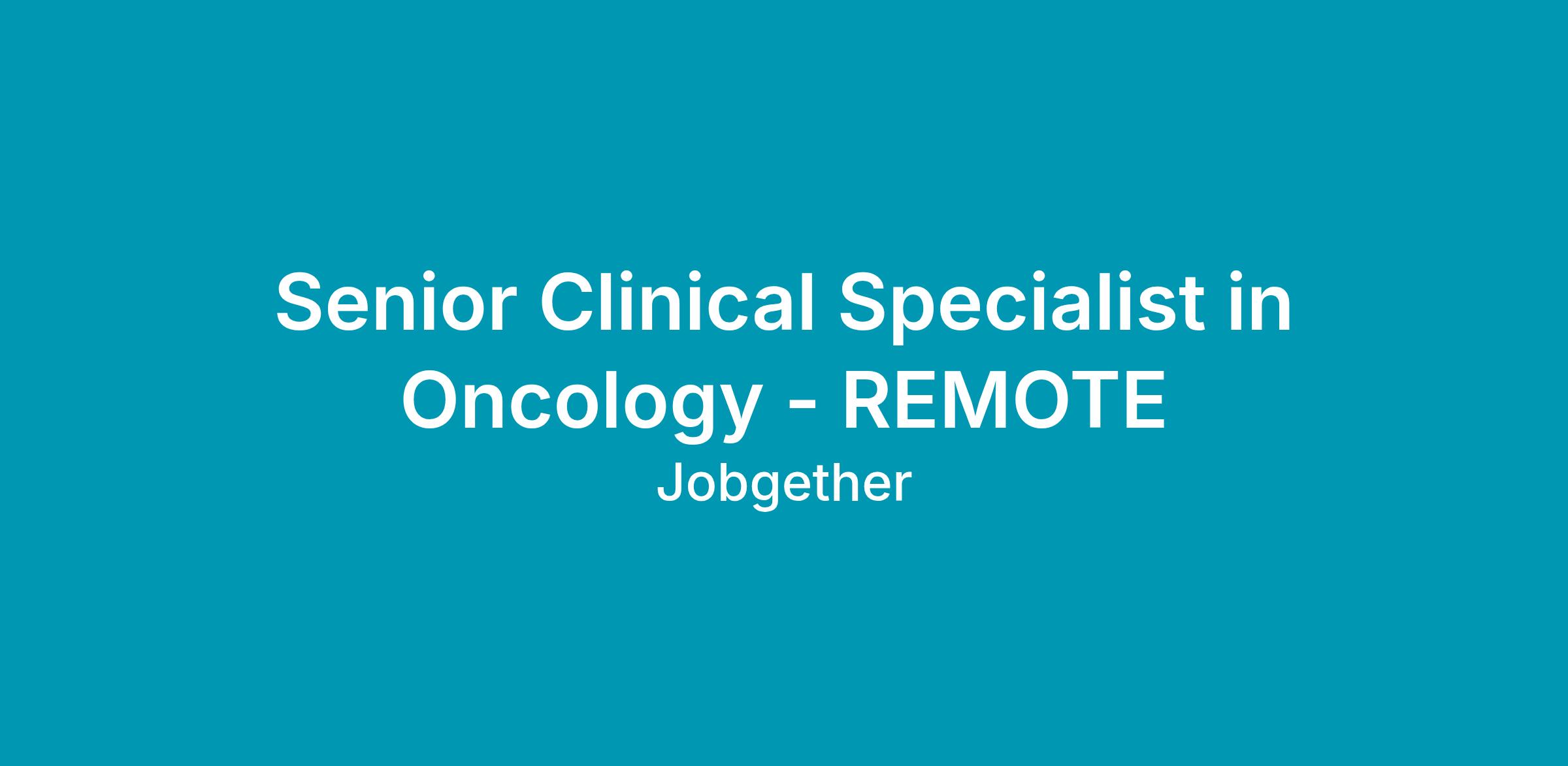 Senior Clinical Specialist in Oncology - REMOTE