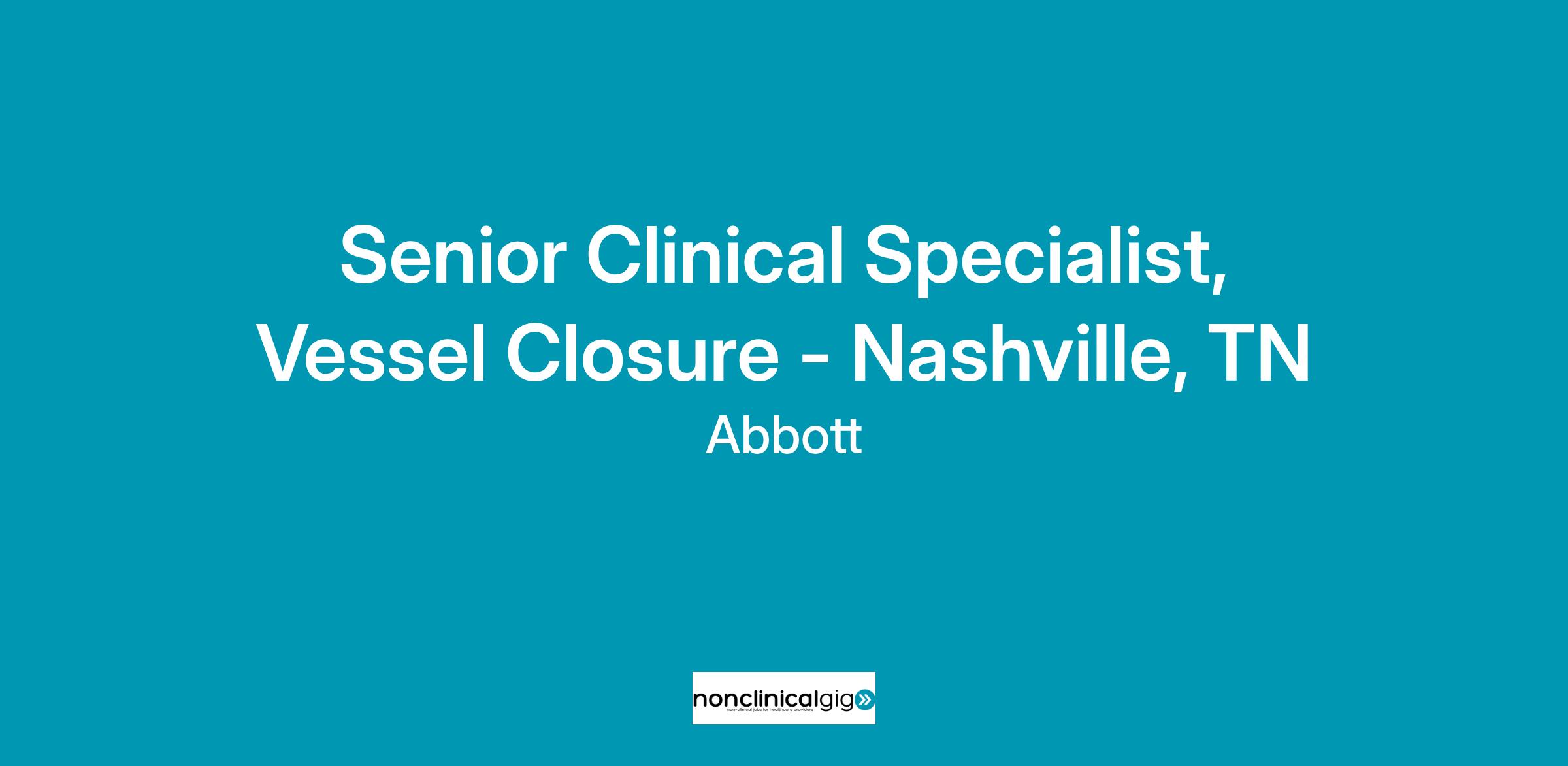 We currently have an opportunity for a Clinical Specialist, Vessel Closure, in Nashville, TN. The Clinical Specialist will primarily be responsible for case planning, case support coverage, and product pull- through throughout the designated territory, and throughout the Region as needed. The Clinical Specialist will promote Vascular products through education, service and training of customers in the hospital setting. The Clinical Specialist will provide clinical education and sales support in order to assist in achieving projected sales goals, increasing sales revenues within assigned product lines, and increasing market share. This position will have a heavy focus on Vessel Closure.