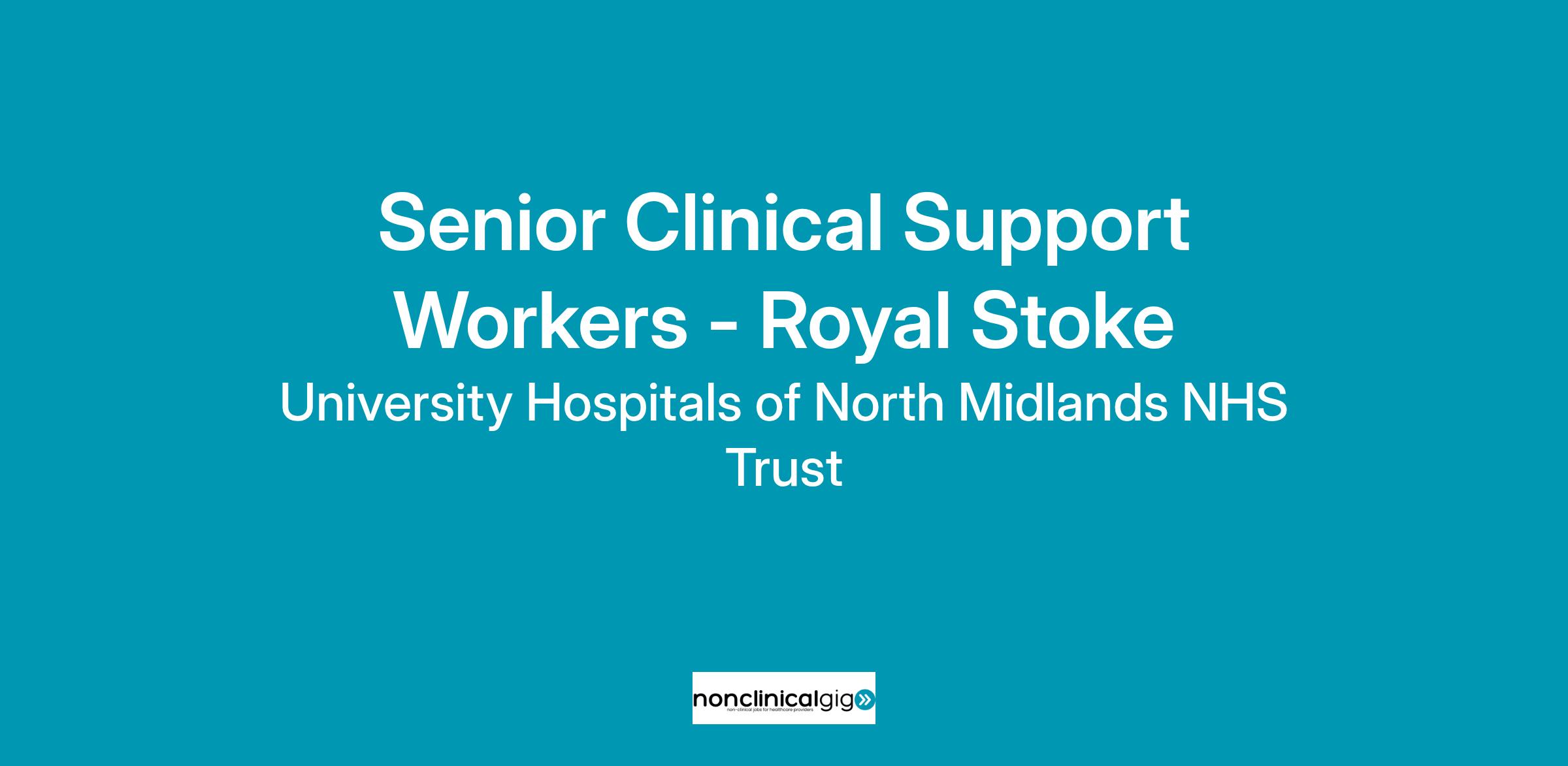 This vacancy is for Senior Clinical Support Worker vacancies at Royal Stoke Hospital.