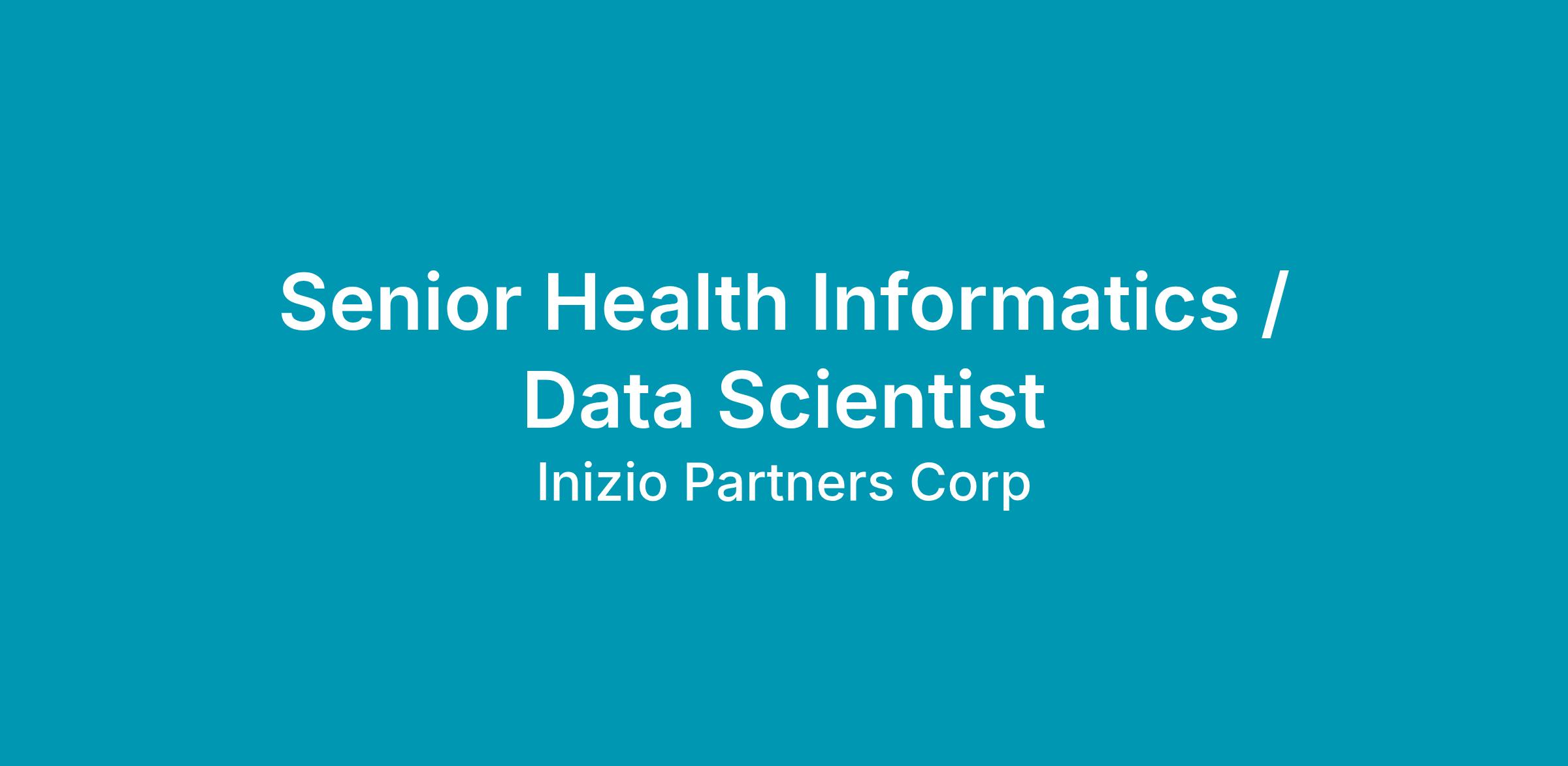 Role: Senior Health Informatics / Data Scientist