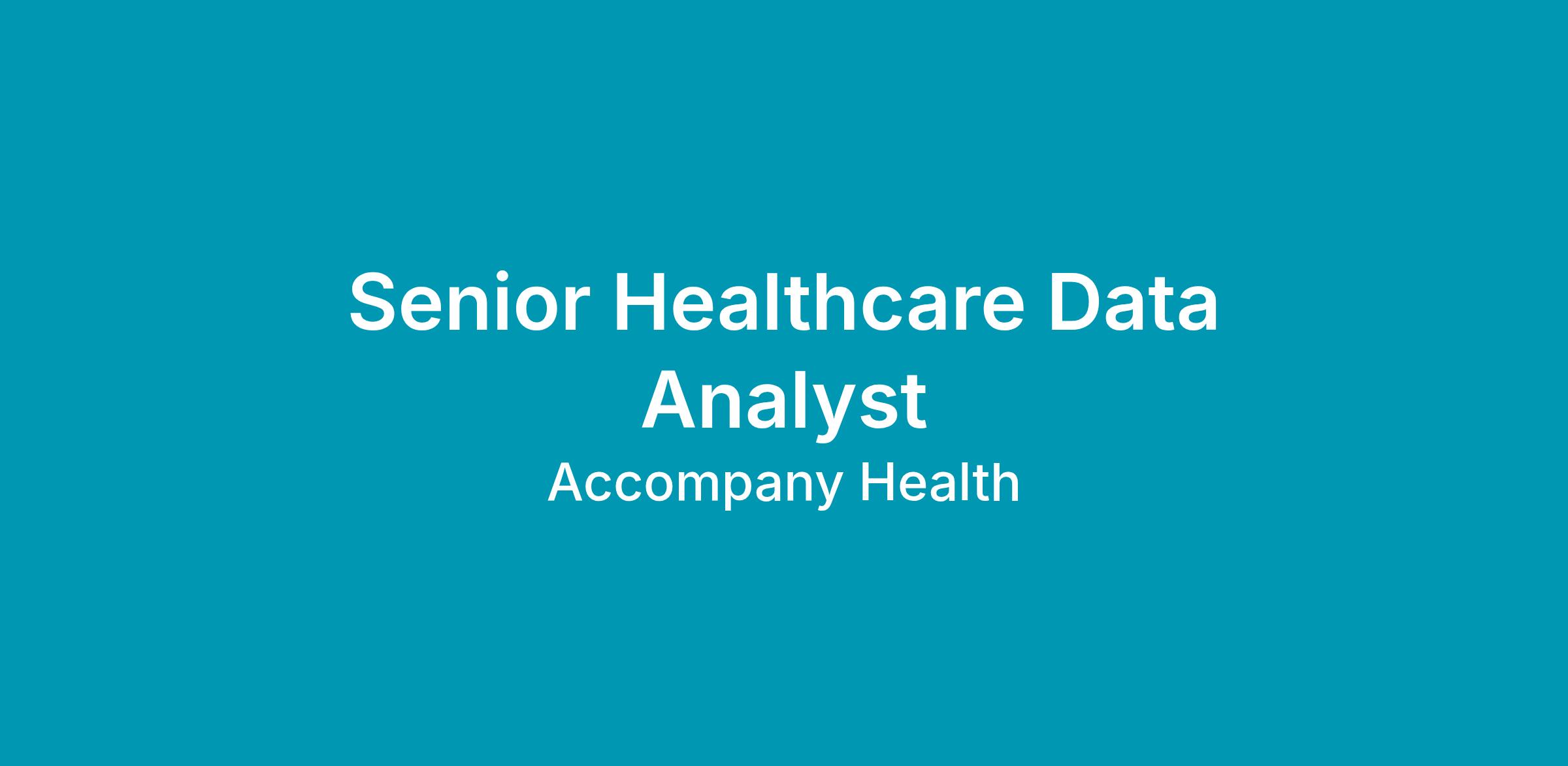 As a Senior Healthcare Data Analyst for Accompany Health you will be: