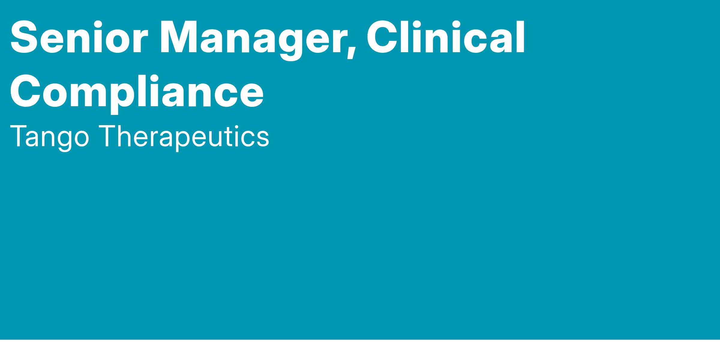 Tango has an exciting new role as a Senior Manager, Clinical Compliance. In this role you will support clinical program compliance and training and support clinical teams across the different stages of development in oncology. The successful candidate will be skilled at understanding and applying global compliance regulations and processes to trials as they advance through clinical development. You will collaborate with cross functional team members across the organization, vendors, and clinical sites. You will work to ensure the needs of the teams are addressed with a collaborative outlook and be solution-oriented to ensure standards, processes, and training are fit for purpose. You will report to the Director, Clinical Compliance.