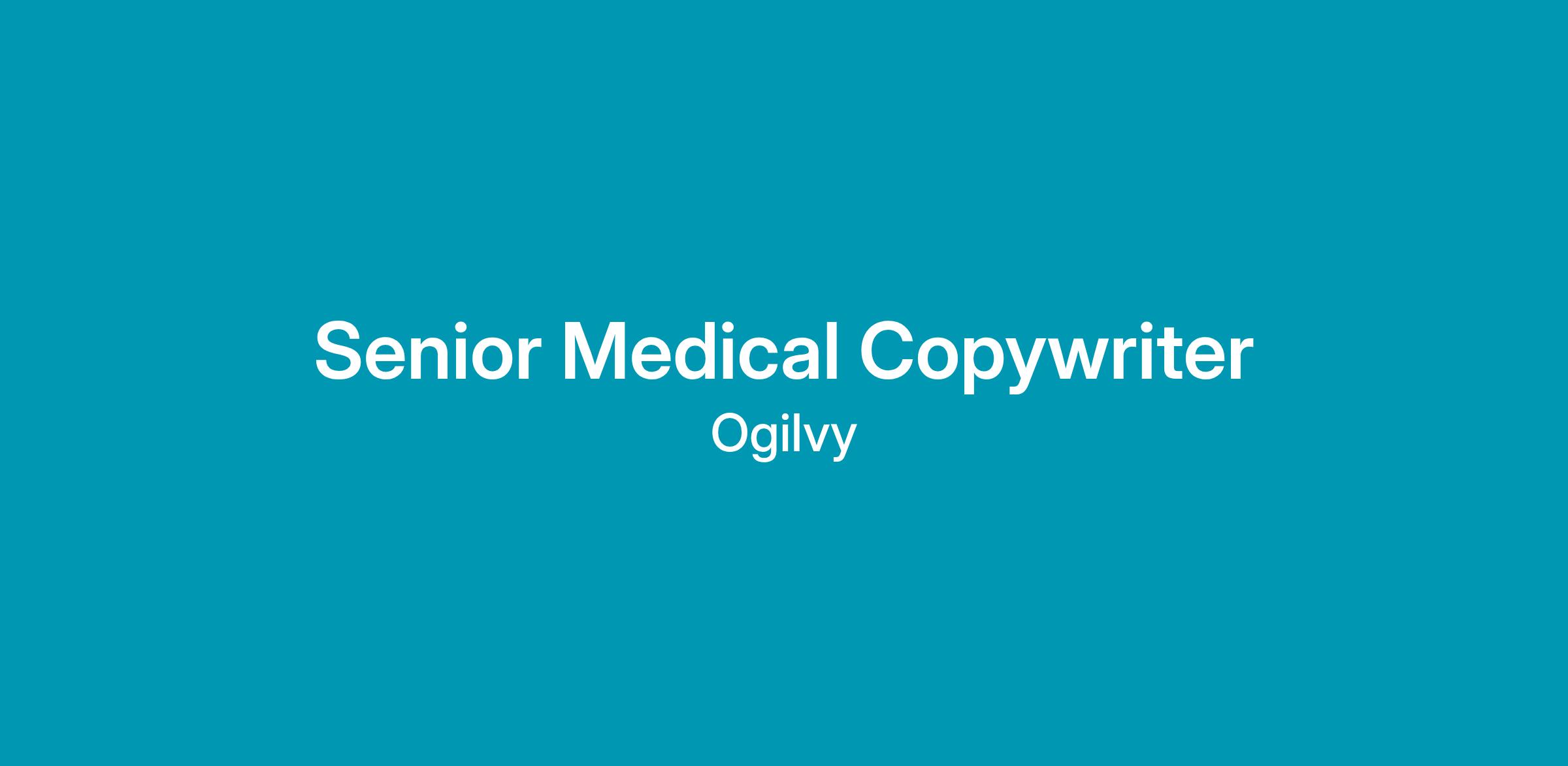 A Senior Medical Copywriter at Ogilvy Health collaborates within a multi-functional team of Creatives, Client Services, Strat Planners and Project Managers, and is a leader in the Writing Department. They are involved in a wide range of projects, including quality assurance, taking writing projects from first draft to final release, reviewing creative copy for accuracy and compliance, mentoring, presenting to clients, coming up with tactics for brands, and doing research for both existing and prospective clients. Senior Medical Copywriters will have their work checked by a Creative Copywriter when necessary, and report to a more senior Medical Writer for mentorship and quality assurance.