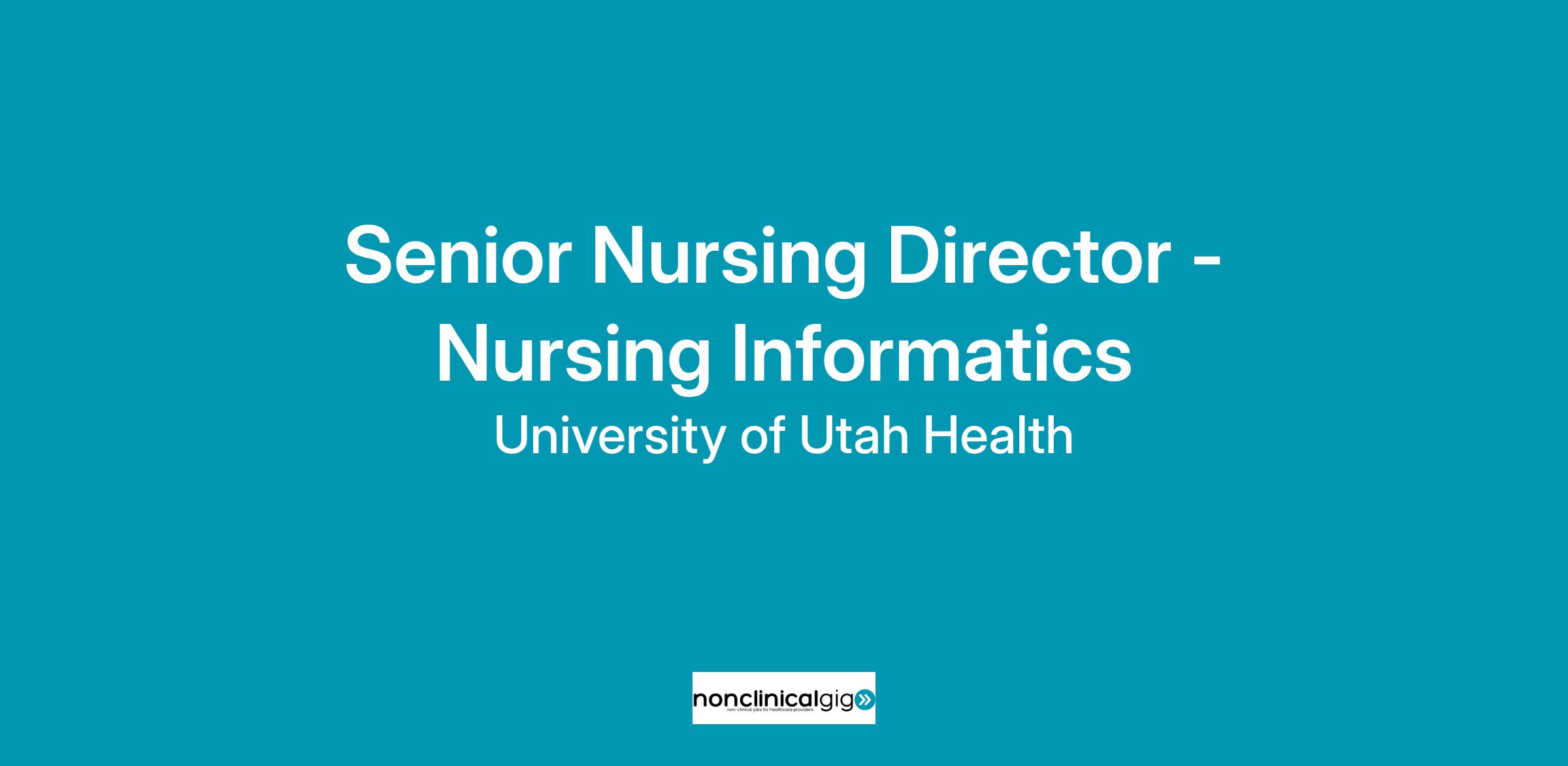 University of Utah Health is seeking a new Senior Nursing Director to lead Nursing Informatics.