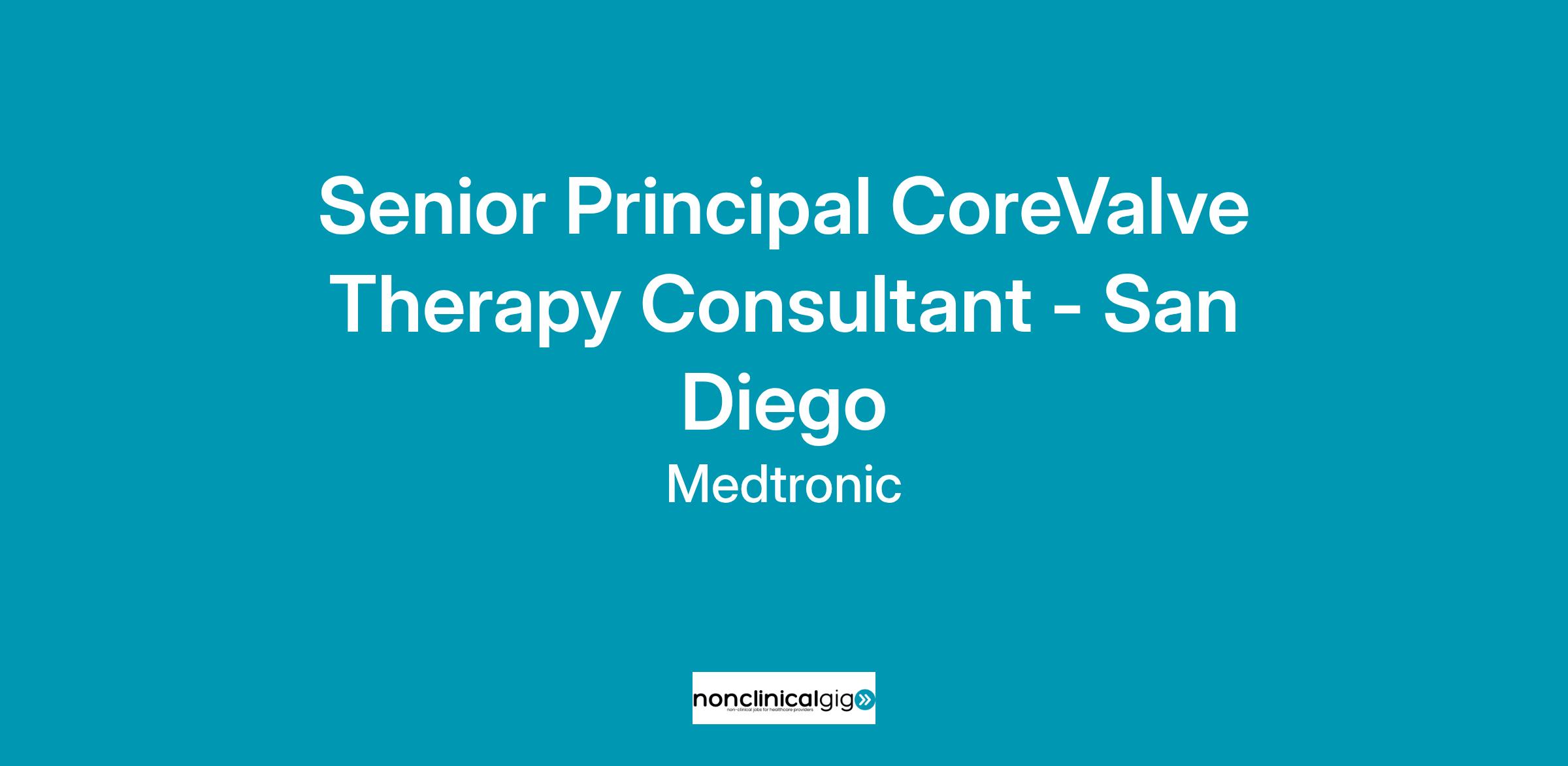 The Senior Principal CoreValve Therapy Consultant (Sales Representative) achieves sales revenue targets and grows market share for a specified geography by promoting, selling and servicing Medtronic CoreValve and related products, post approval, while ensuring safe adoption and growth. The CoreValve Sales Representative 3 practices good territory management with strong organization, administration and expense planning and control. The CoreValve Representative is a partner and resource to the CVG field organization and to Catheter Based Therapies (CBT) cross functional teams, including Medical Education, Marketing, Research, and Development.