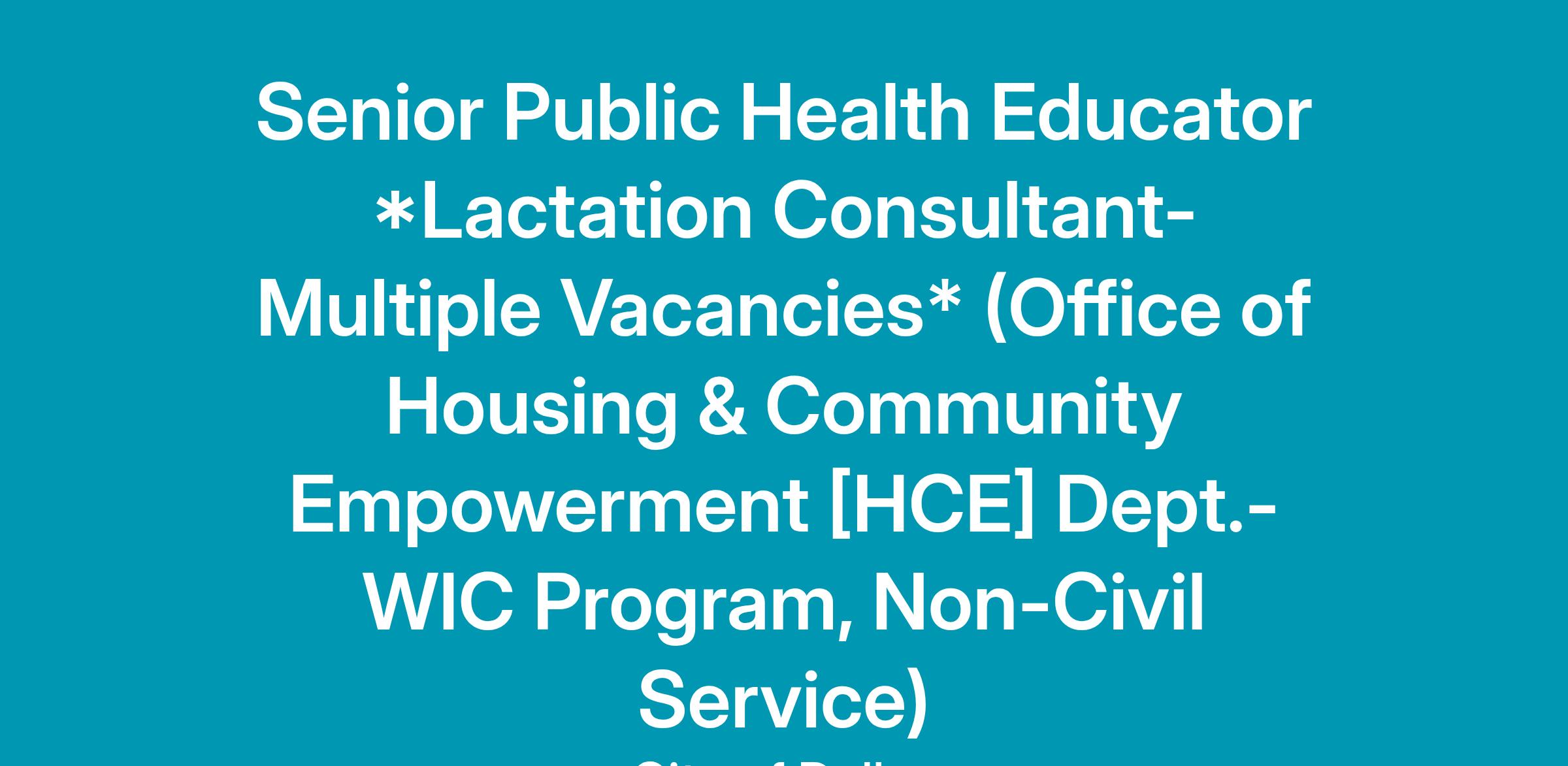 The Senior Public Health Educator provides professional lactation services and breastfeeding support. Prepares, creates, and delivers presentations and educates the public to make informed decisions regarding health practices.