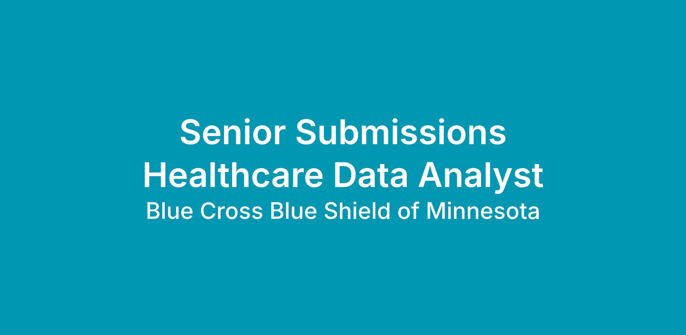 Blue Cross and Blue Shield of Minnesota is hiring a Senior Submissions Healthcare Data Analyst in Eagan, MN. In this role, you will support the Submissions Team by performing data analysis, quality assurance, and regulatory submissions with a focus on Risk Adjustment and Medicare Advantage (MA) data. You’ll collaborate with business analysts, actuaries and other cross-functional teams to deliver accurate reports, resolve risk adjustment challenges and provide data-driven solutions.