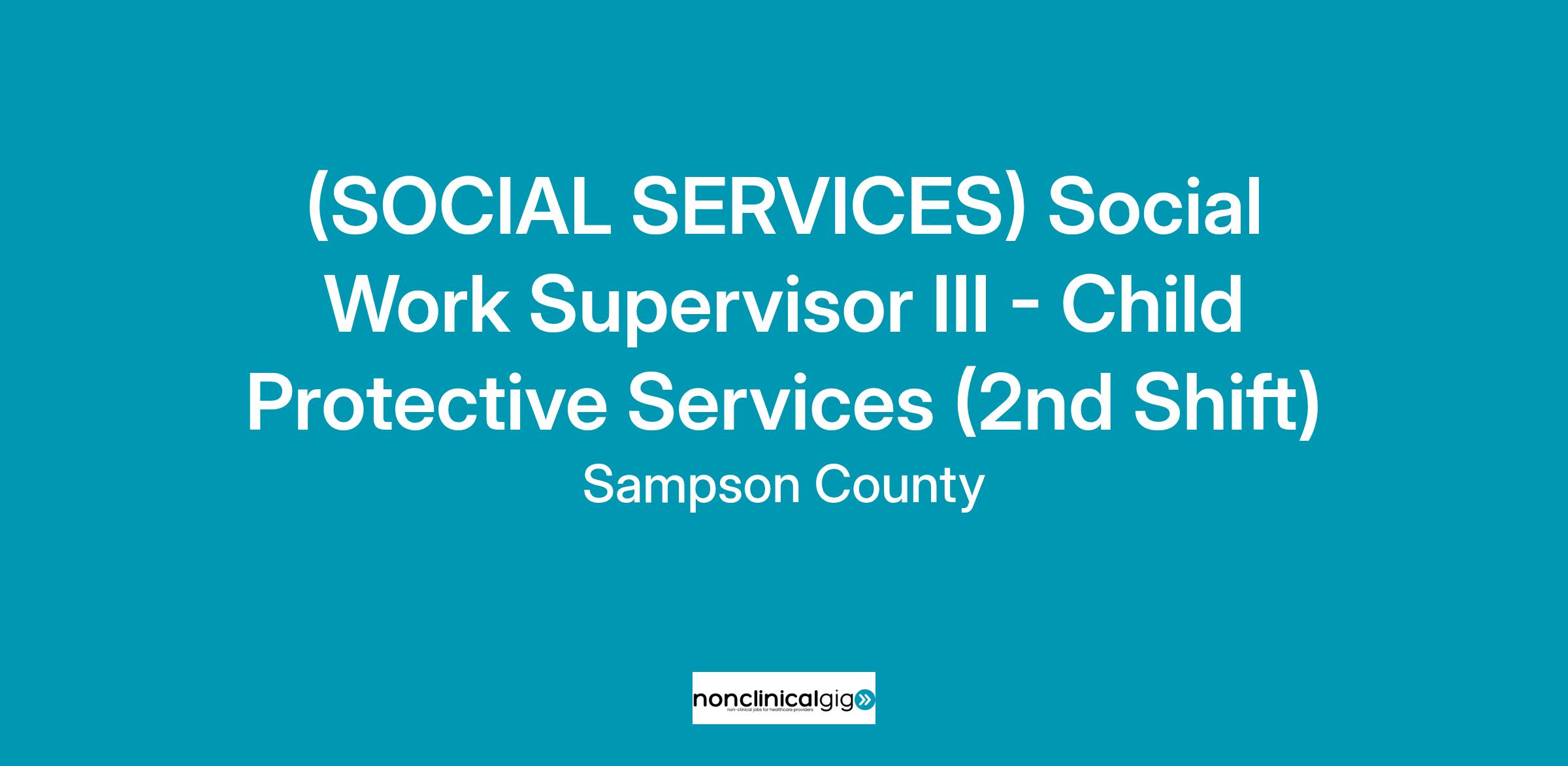 DESCRIPTION OF WORK: The primary purpose of this position is to supervise staff in the delivery of social work services related to Adult Protective Services, Child Protective Services and Foster Care. This Second Shift Supervisor would be assigned a Wednesday through Thursday, seven days on/seven days off rotating work schedule, with hours from 11:00 a.m. to 12:00 midnight.
