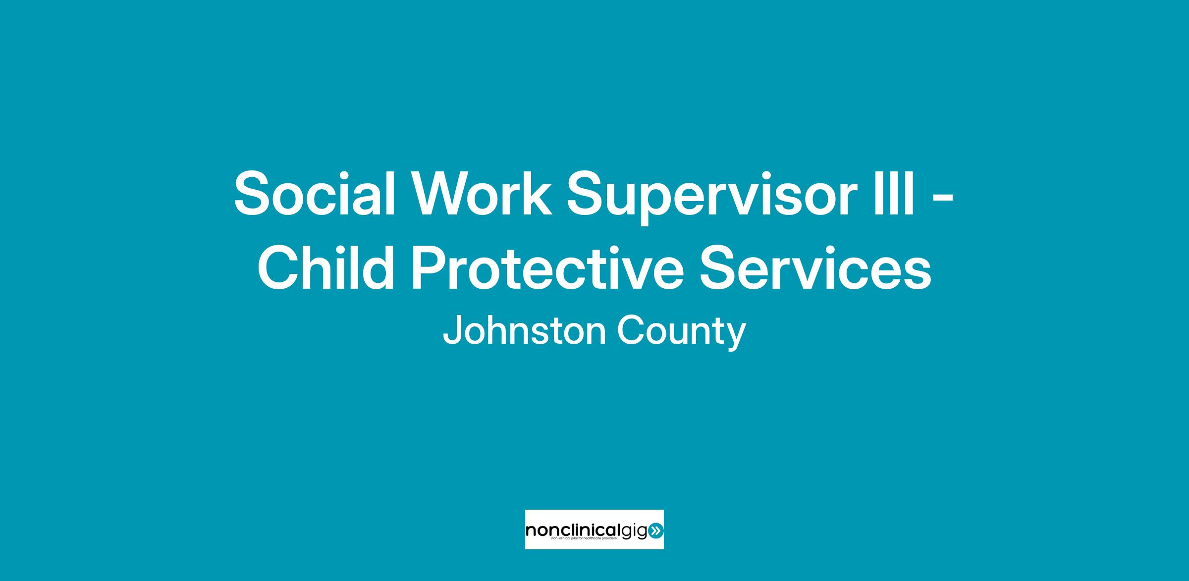 Johnston County Department of Social Services has an immediate opening for a Social Work Supervisor III - Child Protective Services Unit.