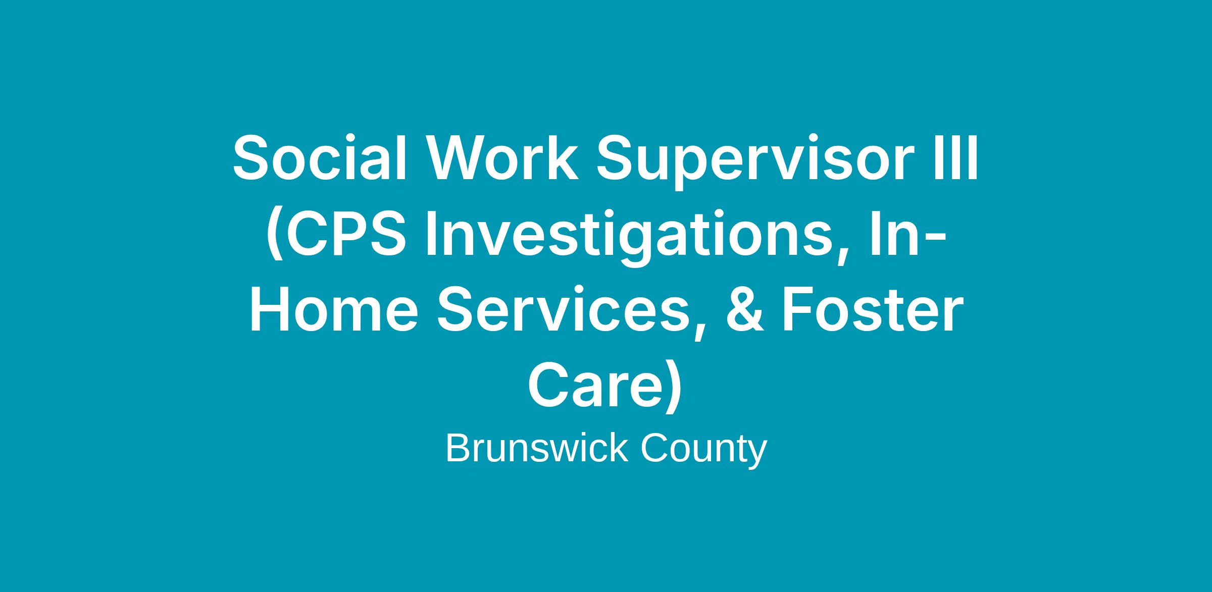 Brunswick County is now accepting applications for the position of Social Work Supervisor III across all program areas. The duties for each area are as follows: