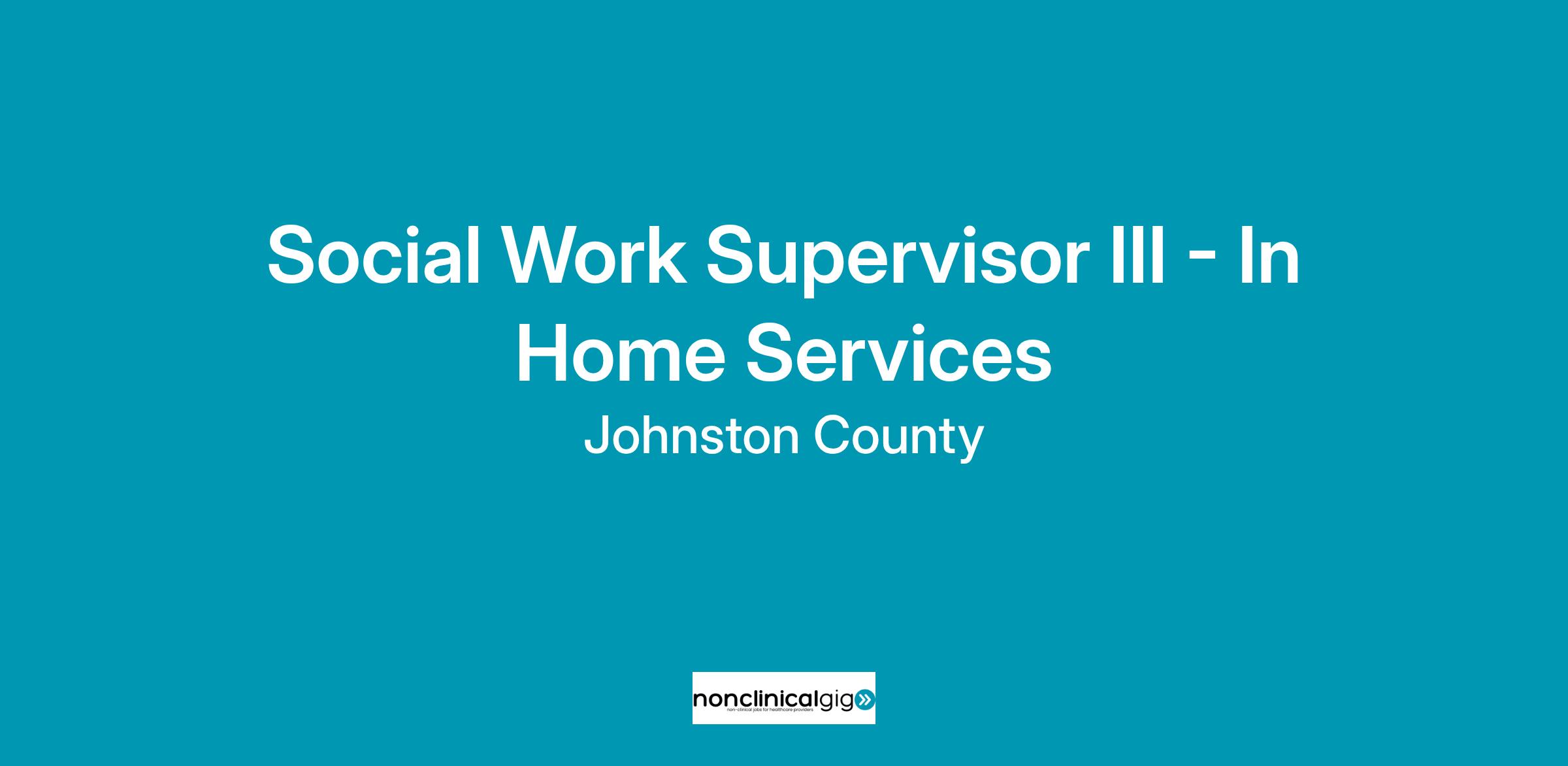 Johnston County Department of Social Services has an immediate opening for a Social Work Supervisor III – In Home Services Unit.