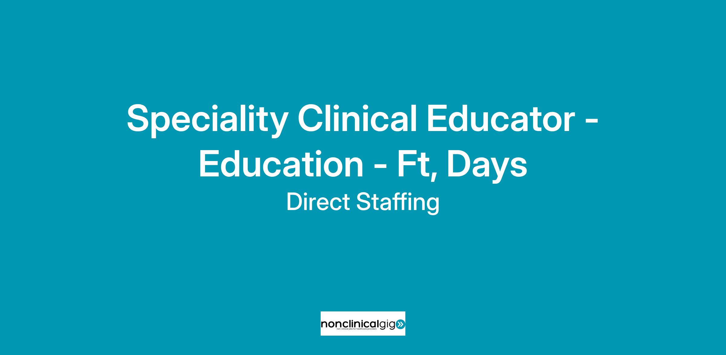 SPECIALITY CLINICAL EDUCATOR - EDUCATION - FT, DAYS