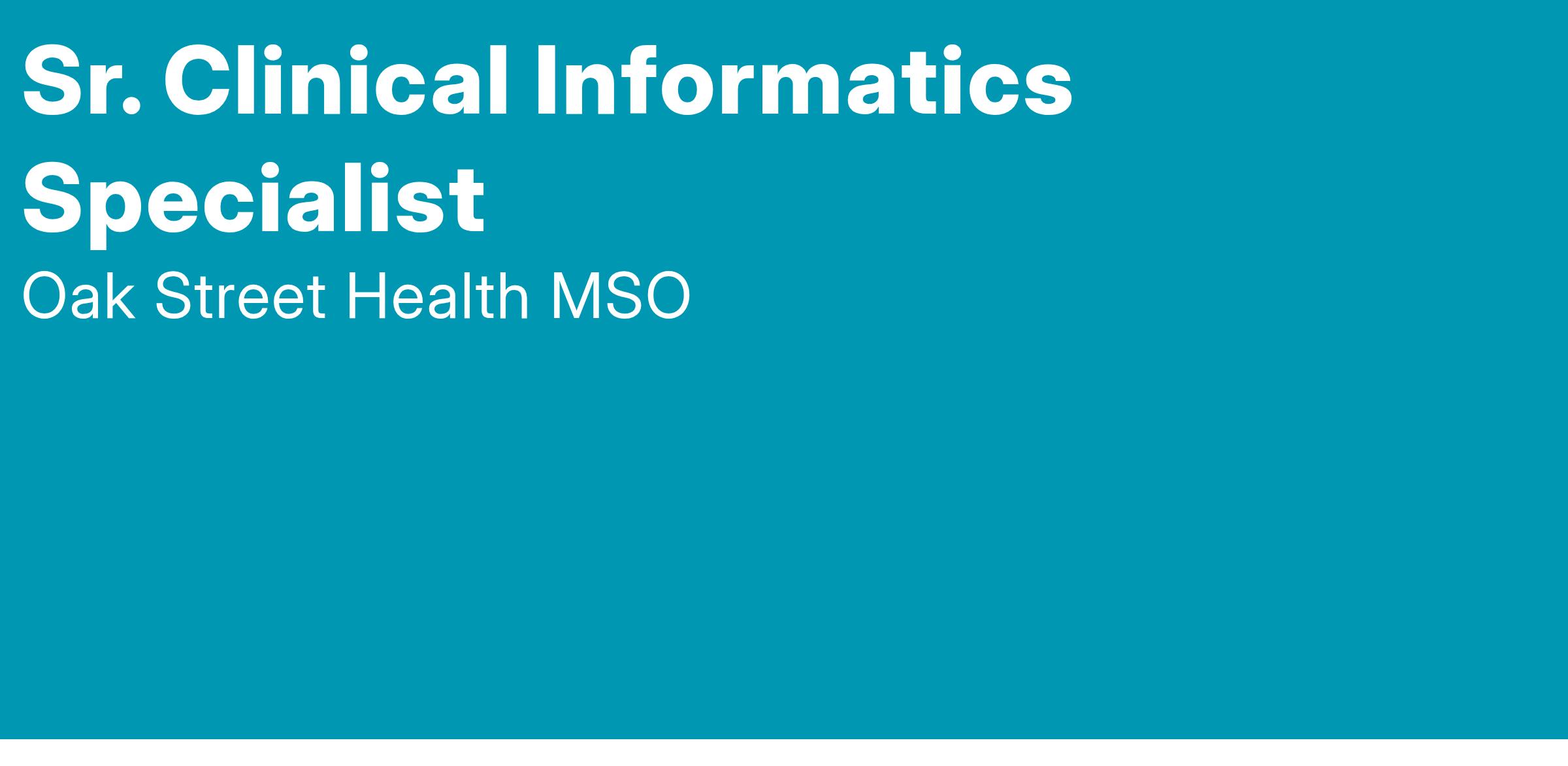 The purpose of a Sr Clinical Informatic Specialist at Oak Street Health is to serve as a coach for medical scribes in order to help provide an exceptional patient experience and maximize provider efficiency.