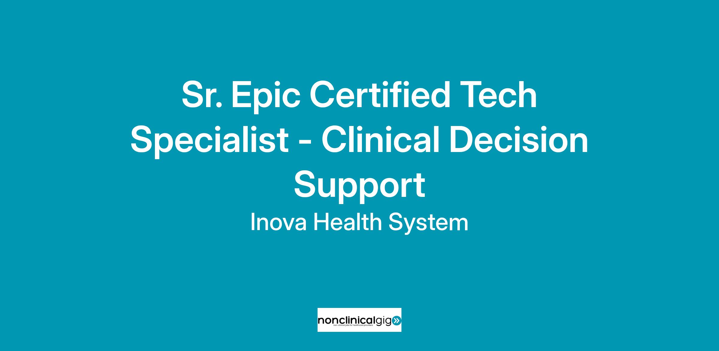 DescriptionInova IT Clinical Applications is looking for a dedicated Sr. Epic Certified Tech Specialist - Clinical Decision Support to join the Team. This remote role will be full-time day shift working Monday – Friday.