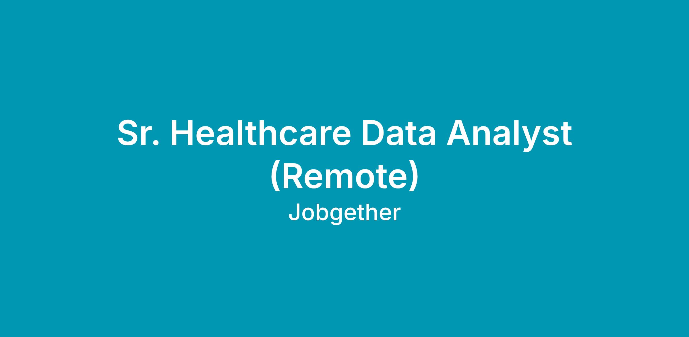Sr. Healthcare Data Analyst (Remote)