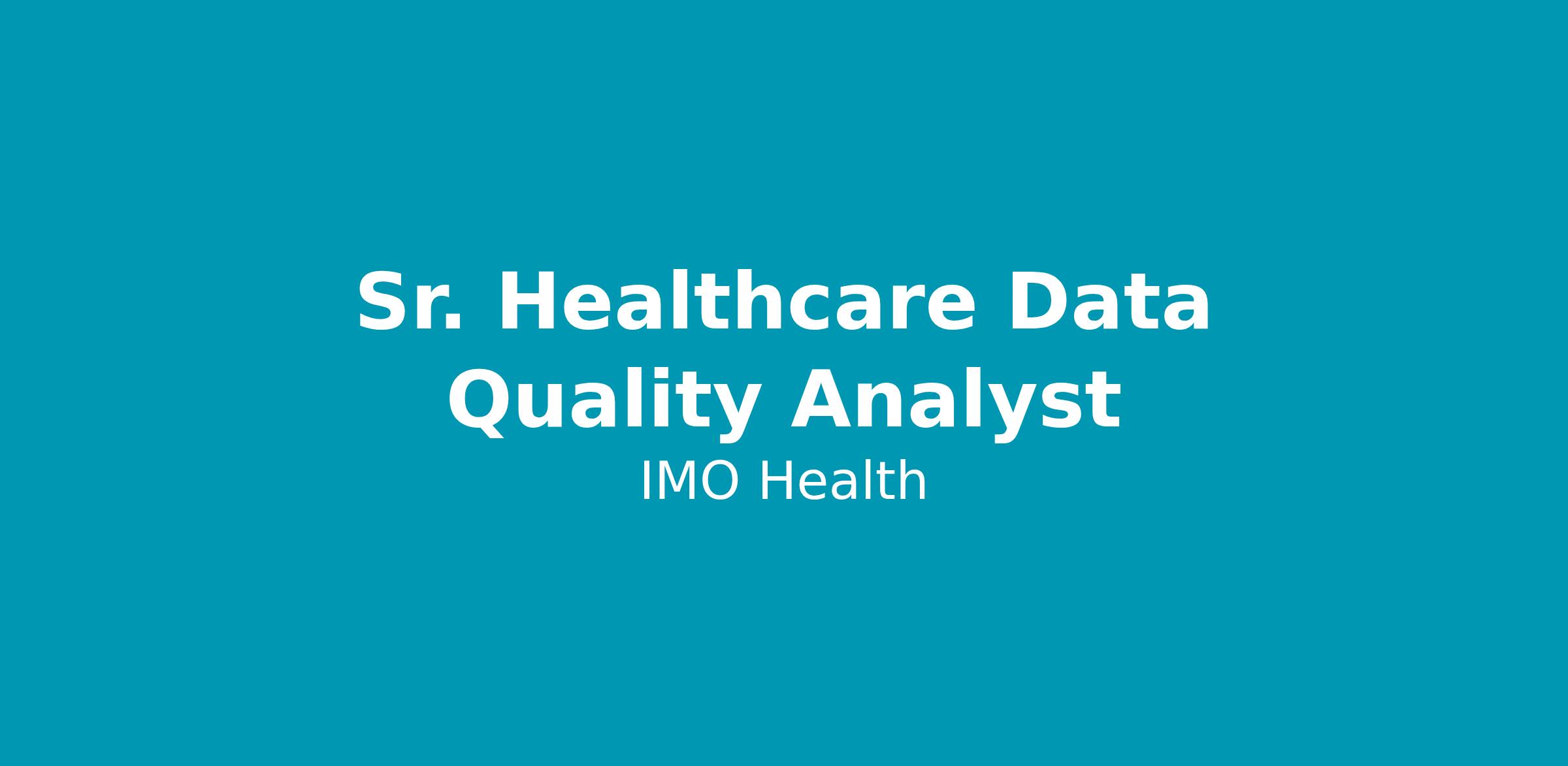 IMO Health is expanding its Data Quality & Insights (DQI) function and hiring Sr. Healthcare Data Quality Analysts to support our growing Sales and Customer Success organizations, while strengthening the connection between our customers’ real world data needs and our product and analytics teams.