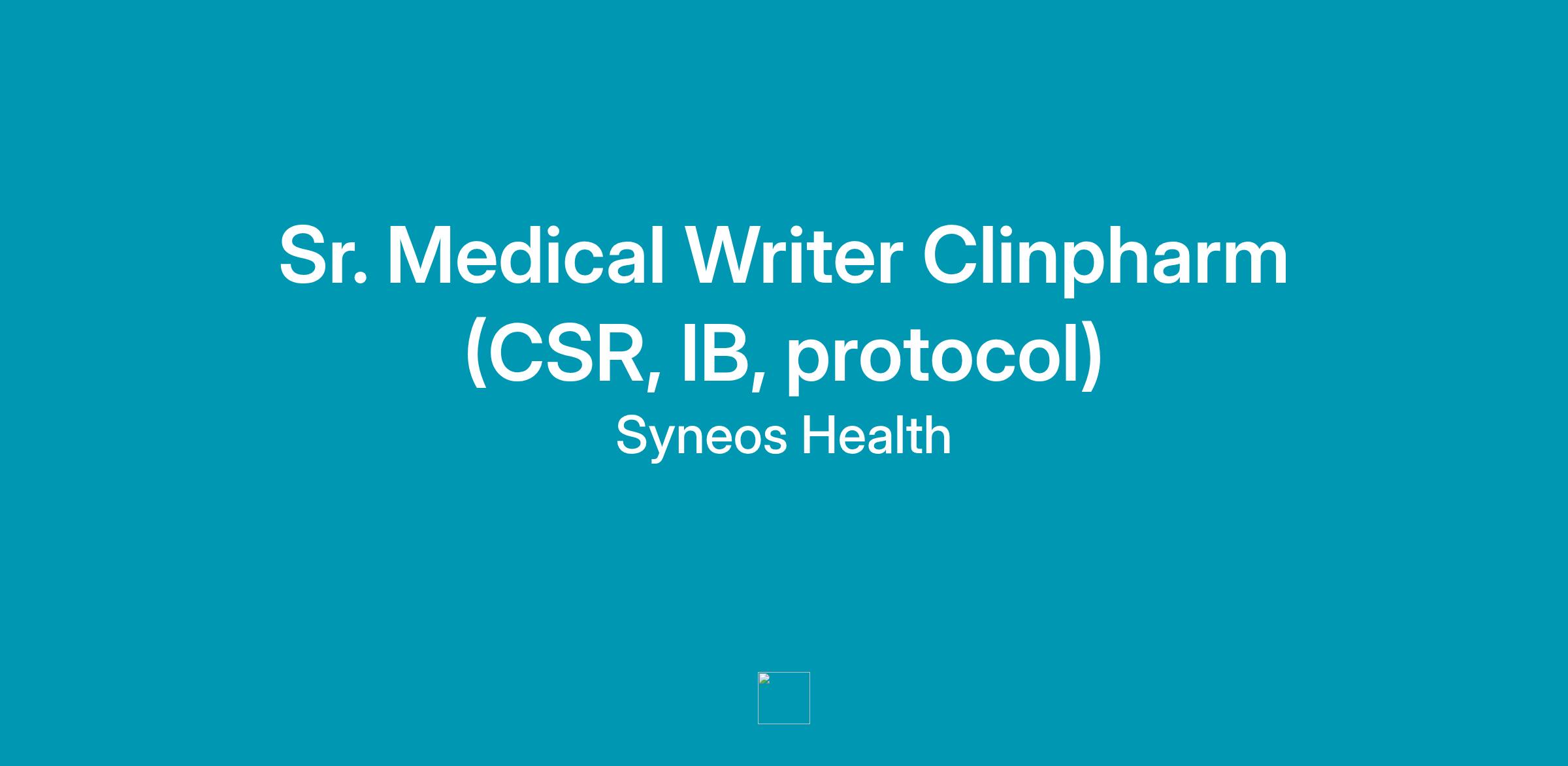 Sr. Medical Writer Clinpharm (CSR, IB, protocol)