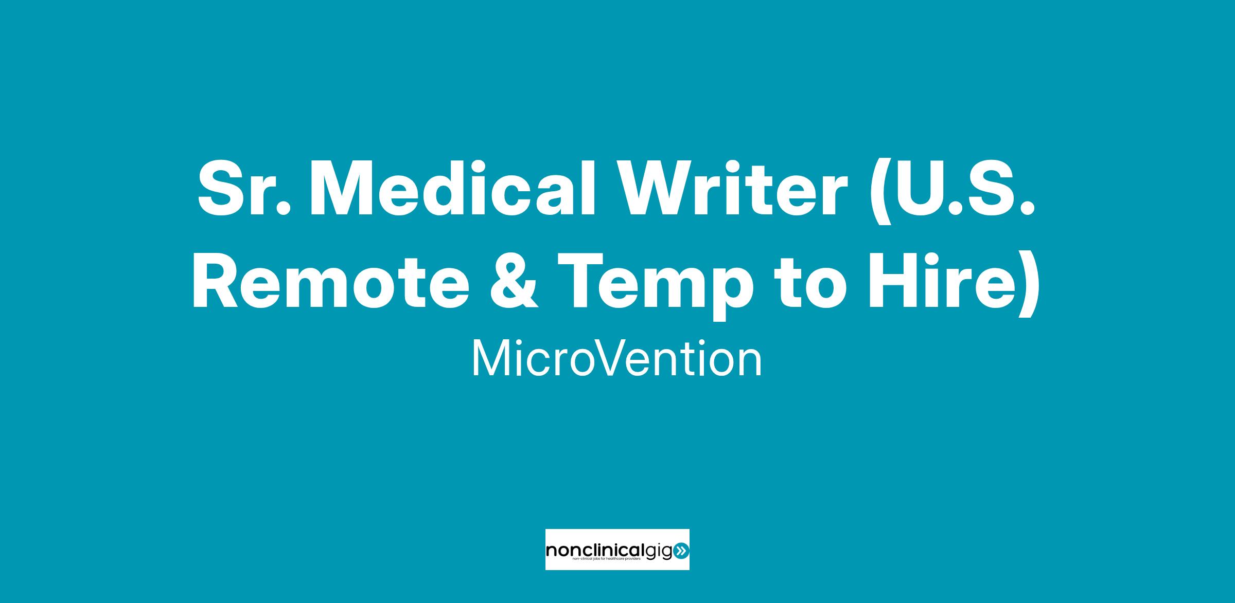 Position Overview The Sr. Medical Writer/Medical Writer will act as primary contact for medical writing projects, cross-functionally working with MicroVention departments and clients to set and meet internal and external deliverables