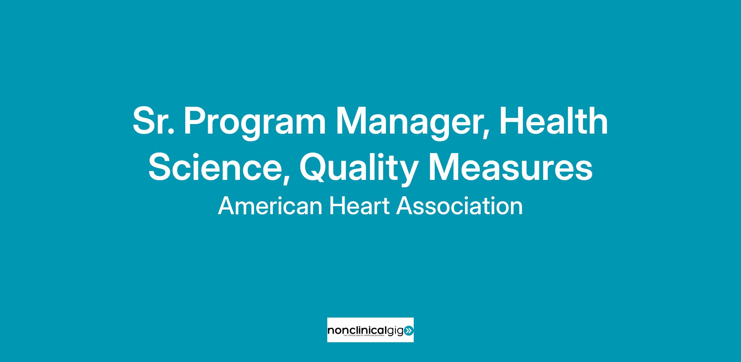 The American Heart Association has an excellent opportunity for a Senior Healthcare Quality Measures Manager based out of our National Center office. This position is home-based.