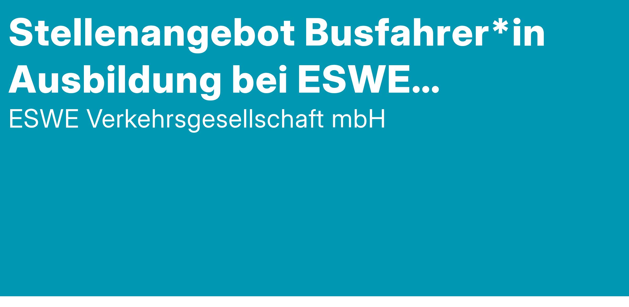 In unserem Team von ESWE-Verkehr kannst Du richtig viel bewegen. Denn als innovativer Mobilitätsdienstleister und Teil eines der größten Verkehrsverbünde in Deutschland setzen wir nicht nur neue Maßstäbe in Sachen Emissionsfreiheit. Wir arbeiten auch täglich an der Verbesserung der Lebensqualität in Wiesbaden. Für unsere über 55 Millionen Fahrgästen im Jahr - für uns alle. Klar, dass wir deshalb auch als Arbeitgeberin auf ein gutes soziales Miteinander und attraktive Bedingungen setzen. Ein modernes Arbeitsumfeld, flexible Arbeitszeiten, gelebte Vielfalt und zahlreiche Entwicklungsmöglichkeiten sind für uns daher selbstverständlich.