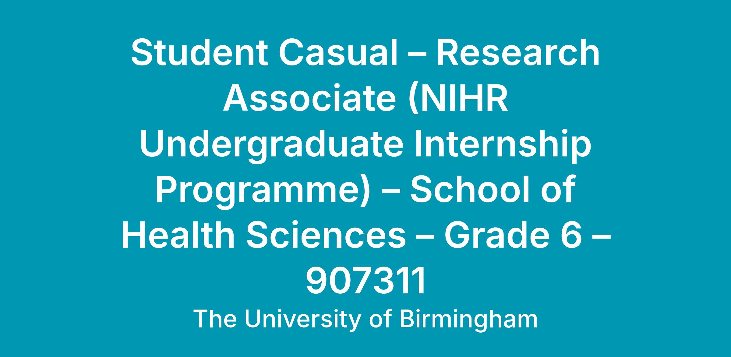 Research Associate (NIHR Undergraduate Internship Programme – 4 weeks) |