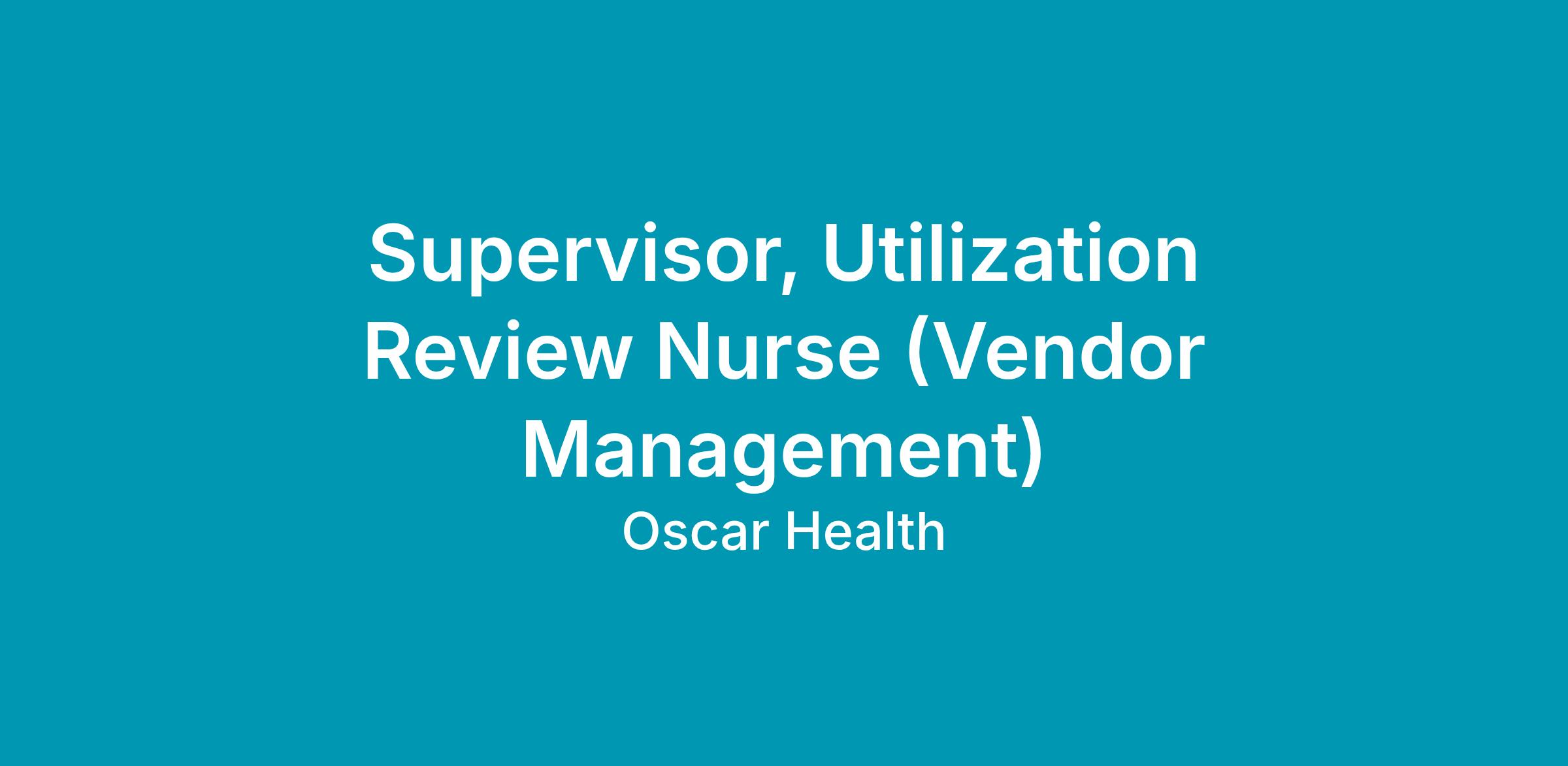 Hi, we're Oscar. We're hiring a Supervisor, Utilization Review Nurse (Vendor Management) to join our team.
