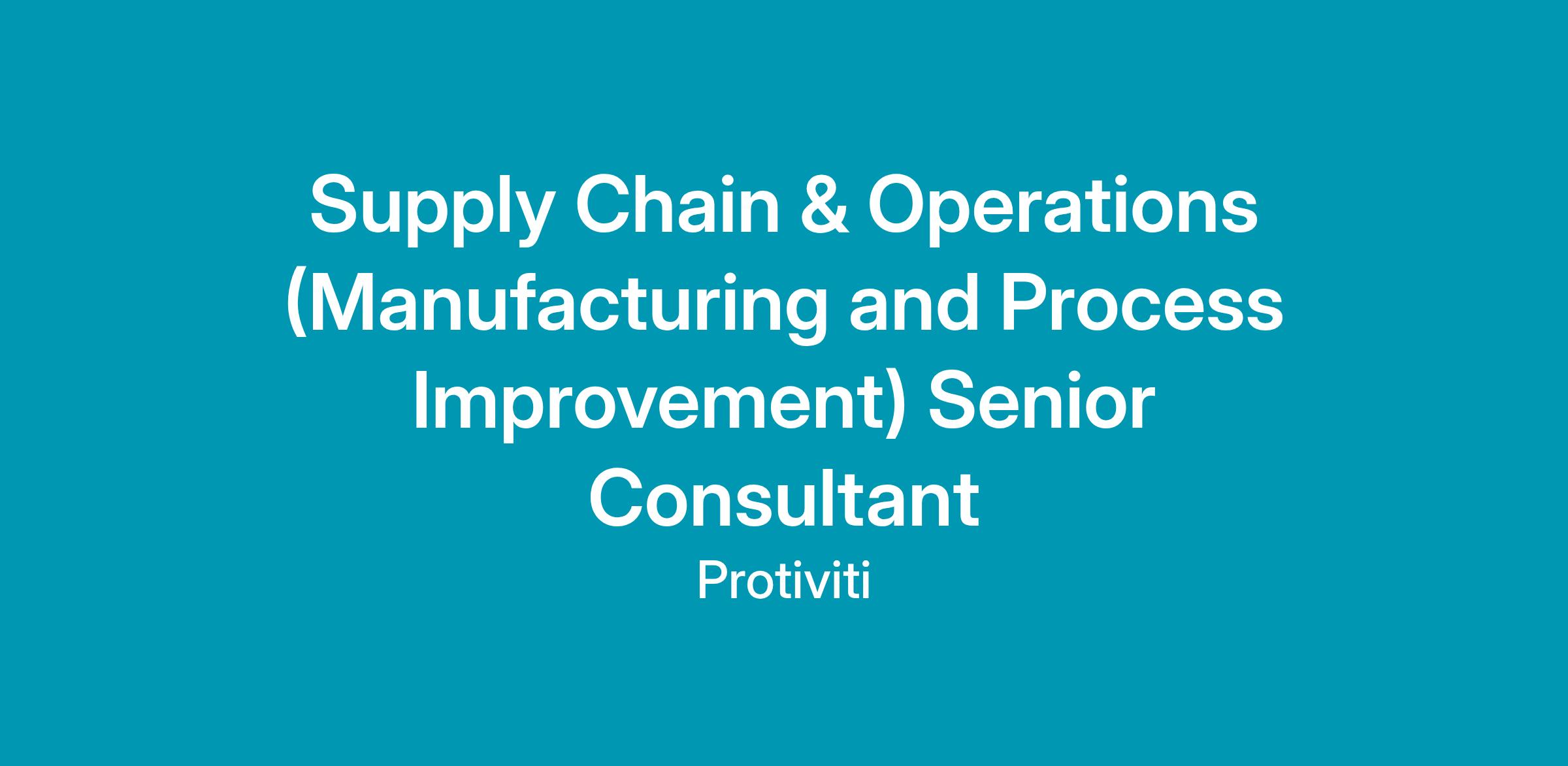 Protiviti is looking for a Supply Chain & Operations Senior Consultant to join our growing Supply Chain & Operations Innovation team.