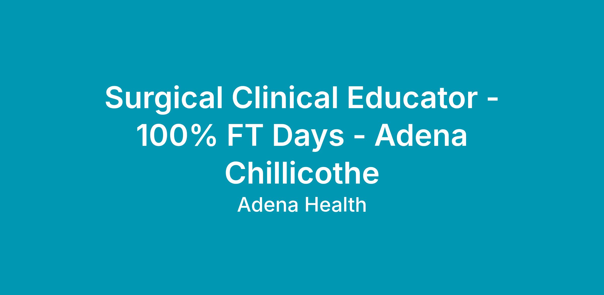 This position will provide education oversight for Surgical Services within Adena Health System. The candidate must have at least 5 years of surgical experience and must have their BSN. Master's degree must be achieved within three years of hire date.