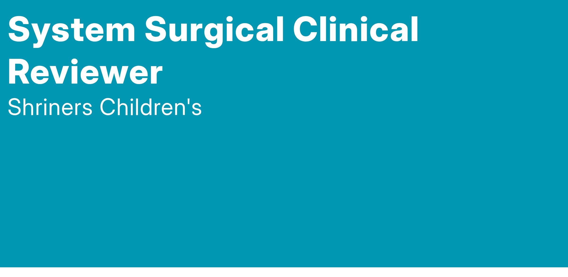 The System Surgical Clinical Reviewer (SCR) will work closely with the Director of Physician Quality & Outcomes, Children’s Surgery Program Manager (CSPM), Medical Affairs Leadership and Department of Surgery at Shriners Children’s facilities which participate in the American College of Surgeons (ACS) National Surgical Quality Improvement Program (NSQIP) for Pediatrics and are pursuing efforts for Children’s Surgery Verification (CSV). The System SCR will work with local SCRs, Surgeon Champions and Performance Improvement Directors to review risk-adjusted, semi-annual reports, track and monitor strategies implemented for improved practices, prepare data, presentations and QI updates at the collaborative Performance Improvement and Patient Safety (PIPS) quarterly meeting. The System SCR will also support the local SCRs in collecting and submitting reliable data to the ACS’s NSQIP Pediatric platform.