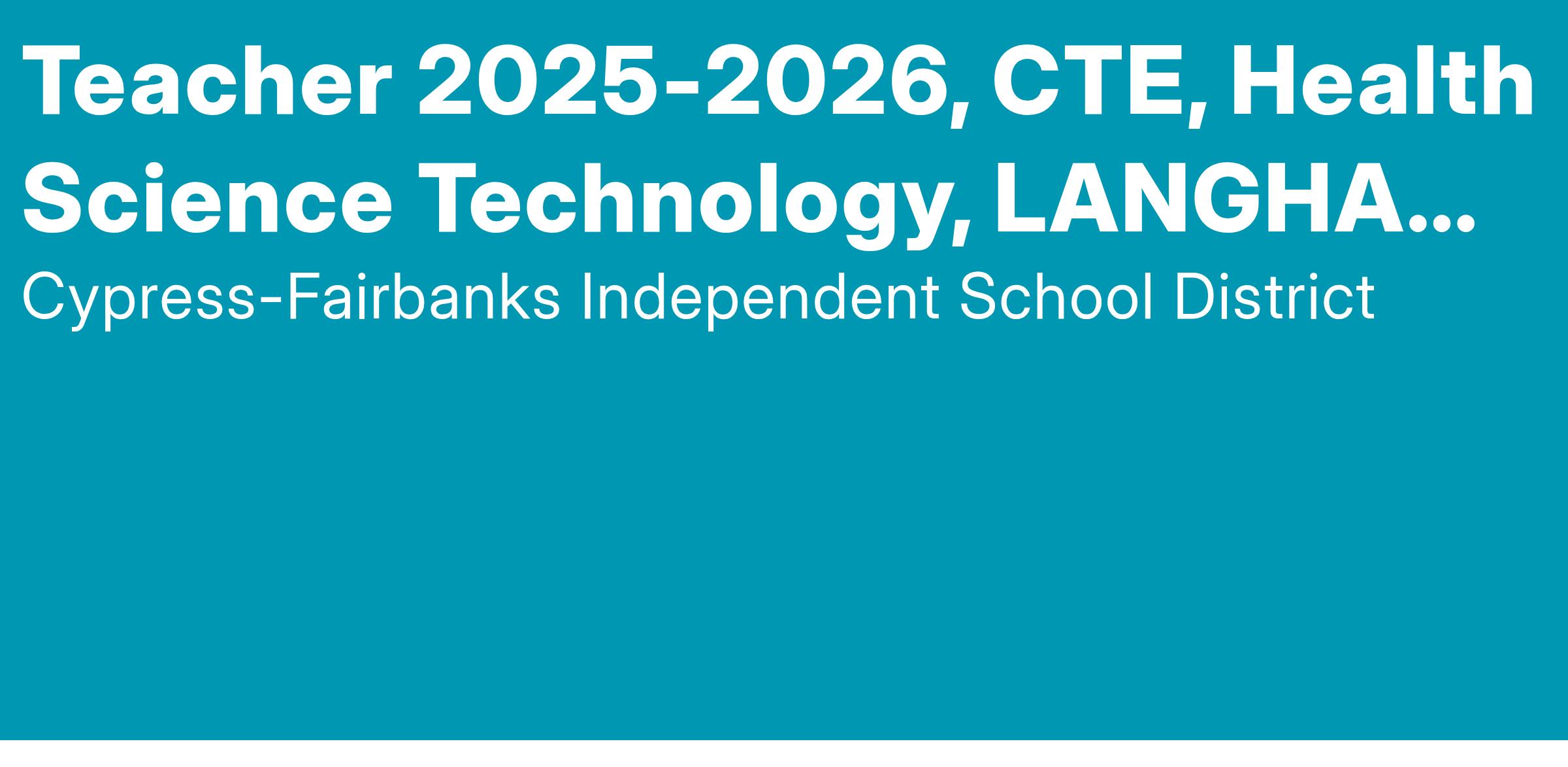 Teacher 2025-2026, CTE, Health Science Technology, LANGHAM CREEK HIGH SCHOOL
