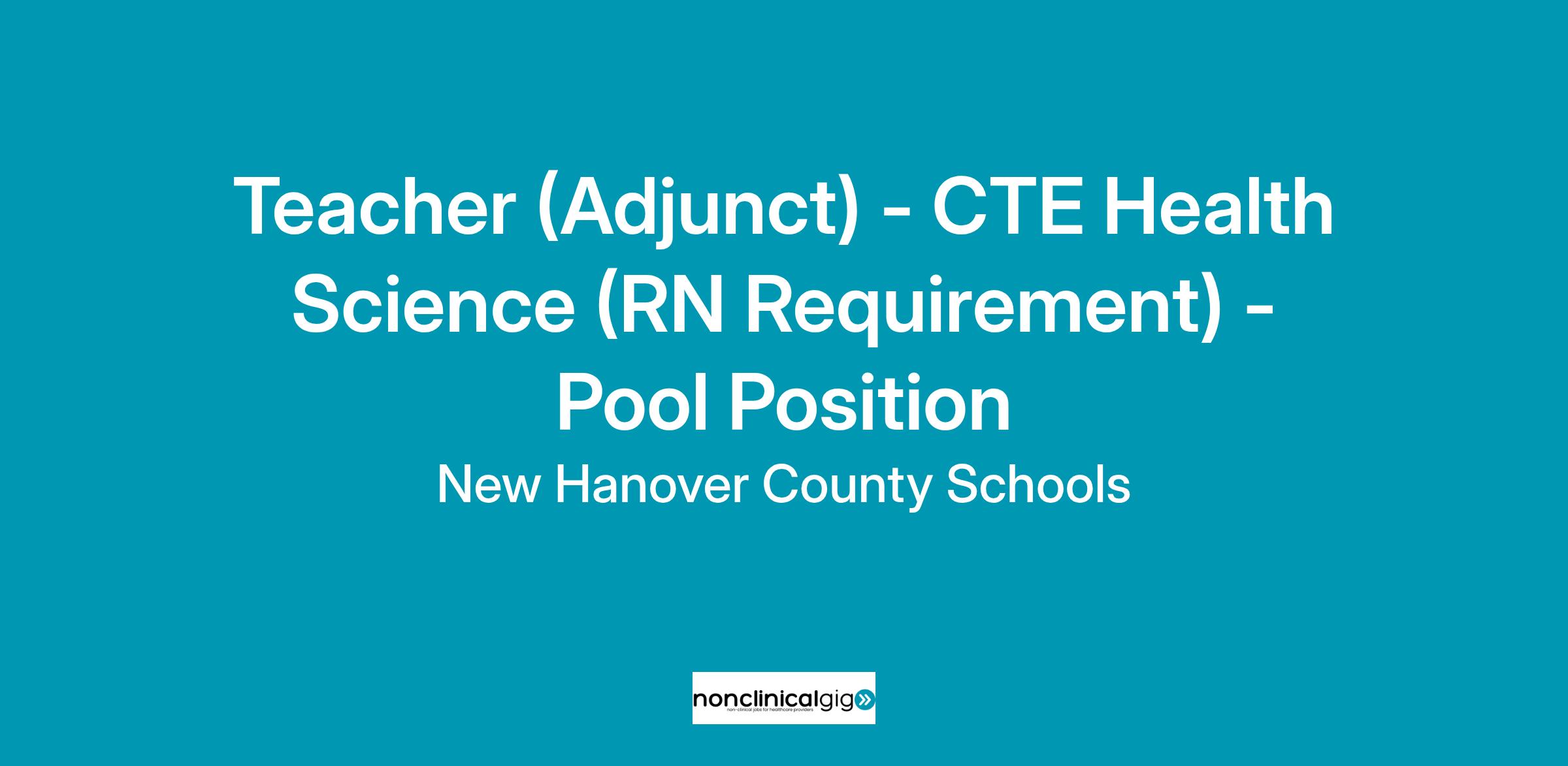 Teacher (Adjunct) - CTE Health Science (RN Requirement) - Pool Position