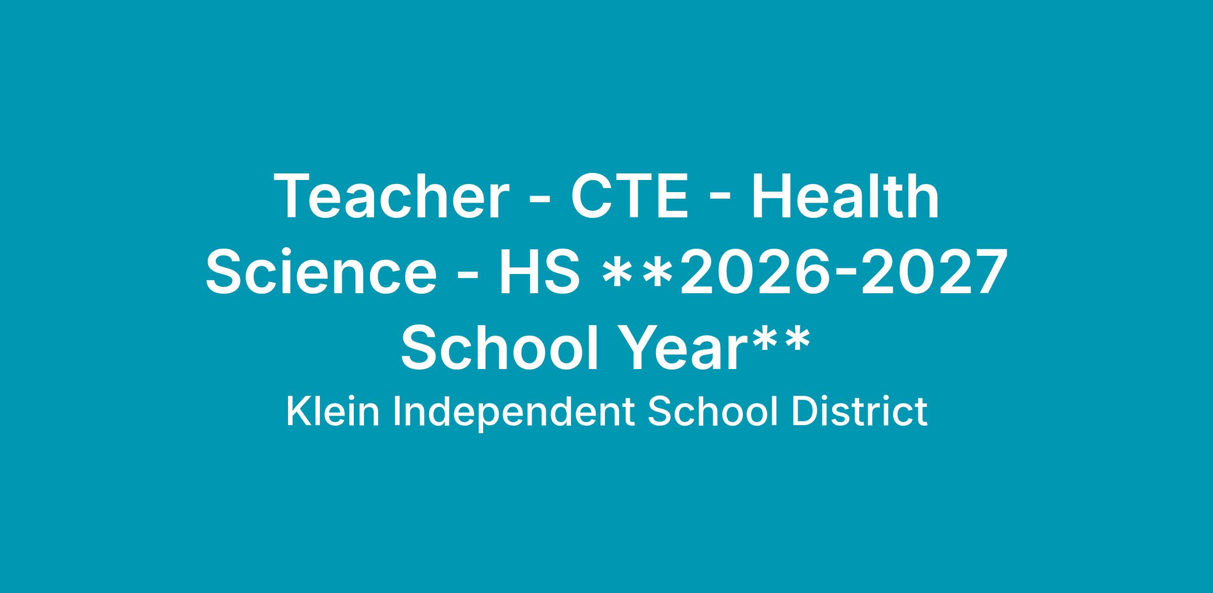 Teacher - CTE - Health Science - HS **2026-2027 School Year**