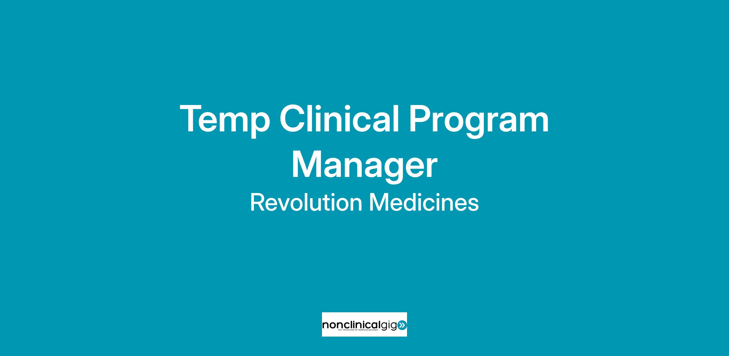 This is a unique opportunity for a Clinical Operations Professional. As a Clinical Program Manager you will be responsible for acting as a central contact for the Clinical Study Team(s) and assist with the execution and management of Revolution Medicines (RevMed) clinical trials.